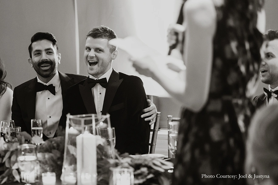 Rishi shares, “Someone once told me to make sure and look out onto the sea of your guests and take in that moment, which I did, and it struck me just how lucky we are to have such loving and supportive family and friends. We fully recognize our privilege because so many of our LGBTQIA brothers and sisters don’t have that. I have a wonderful relationship with my parents and brother, and they’ve been by my side through the ups and downs of coming out. And all of that gratitude and emotion culminated that night listening to my dad’s speech, who was recovering from a stroke he suffered just three weeks ago.”