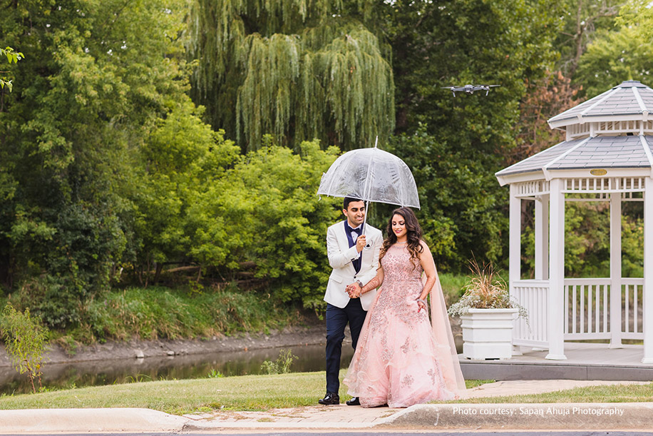 “I first met Nischal during orientation week when we were both starting our residency at a hospital in Chicago, US. As soon as we started talking I discovered that he was someone truly special. A few weeks later, our mutual friends asked if we were interested in being set up and I thought I would give it a chance. The next time I saw him was when our friends arranged a group outing at a reggae bar and we bonded instantly due to our disinterest in the music there. We talked for hours and he ended up asking me to go out with him the next day. I was going to the Taylor Swift concert so I declined (priorities!) but I said that I could meet later that week. Our first date was at Millennium Park for which I made sandwiches ahead of time. They got super soggy by the time we got to eat them but he still said they were tasty. I should have known right then that he was the man I was going to marry! I thought it was sweet – he took a picture of us together on our first date like we were already in a relationship and making memories. We ended up going on five dates over the next five days and the rest was truly history.”