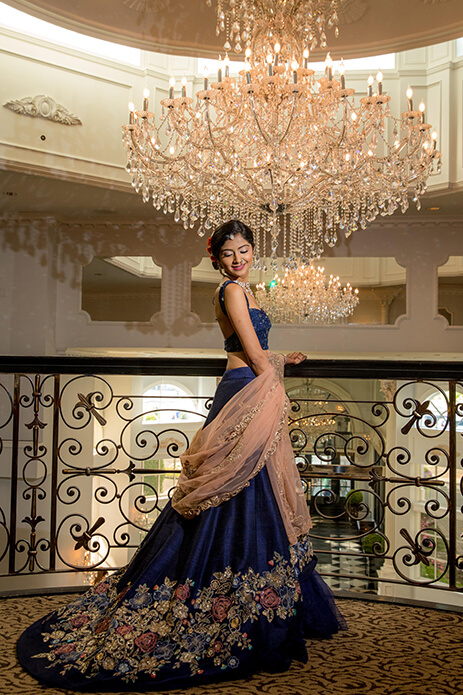 The first reception had a ‘Black Tie’ dress code, where the bride wore a Gaurav Gupta gown, while the groom donned a classic tuxedo. Guests had to walk the red carpet and were greeted by waiters serving signature drinks. A stilt walker, professional violinist, and a 75-ft long LED dragon puppet blowing dry ice were the highlights of the evening. Inspired by the Bollywood movie, ‘Kabhi Alvida Na Kehna’, the couple took special permission to get clicked across the street at the iconic Grand Central Terminal. This function was followed by a second Indian reception which was more like a farewell party held at a beautiful venue with a grand double staircase and opulent chandeliers. Twinkle wore a navy blue Shyamal and Bhumika lehenga, and Dipesh opted for a matching bandhgala suit.