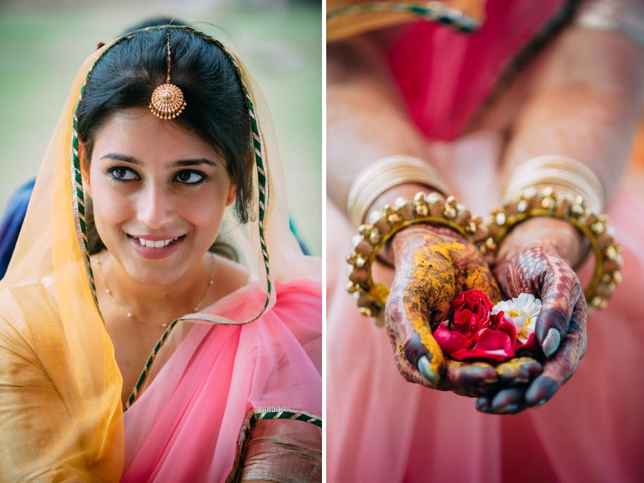 Post all the research, I planned a trip to India with the intention of shopping for my entire trousseau in the span of a week. I have to say checking out all sorts of bridal wear all over Delhi was super overwhelming! My last resort was Om Prakash Jawahar Lal where I found a beautiful peach lehenga the colour of which was soothing to the eye after all the bling and bright reds and it was within my budget too! And of course, like every other bride, I am obsessed with Sabyasachi and bought my engagement attire, a lehenga-sari from the Carma store at Malcha Marg. (A little indulgence doesn’t hurt!)”