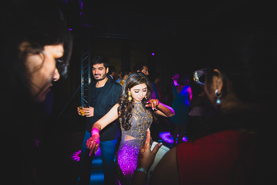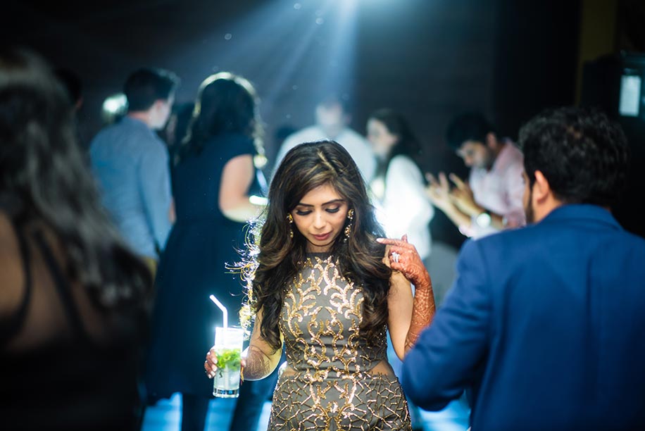“The after party was a relaxed event for youngsters, and close family and friends. For this, Nisha designed a very unconventional steel grey dress with a trail and gold detailing. The best thing about the stunning creation is that even though I felt very glamorous in it, it was also extremely comfortable during my impromptu dance sessions! For the jewellery, I went with gorgeous statement earrings and a happy smile.”