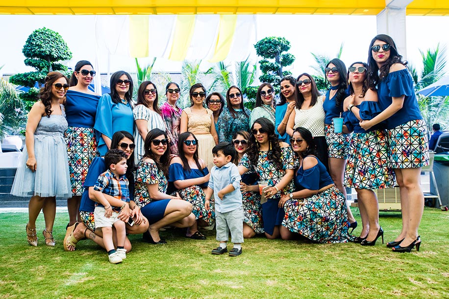 “The poolside brunch was the first function at the destination venue in Karjat. Since the decor was very vibrant, I wanted to wear something fun, young and understated for this event, and still be able to stand out. The theme and ambience of the party were that of a picnic, and all the guests were given a blue dress code. Nisha designed a unique peach crop top and skirt which were perfect. It had lace and pearl detailing, which when paired with diamond earrings by Zema Fine Jewellery looked breathtakingly gorgeous!”