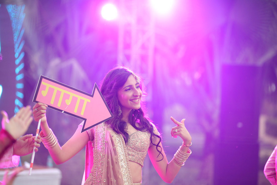 The guests and family members from the Gayatri’s side were called ‘Gaga da Crew’, and the groom’s group was called ‘Vikram & Veer’. Both sides drove down to The Tree House Resort in Jaipur to start the wedding celebrations with the ‘Youngster’s Night’ that was termed ‘Bawli-Bawlo’.