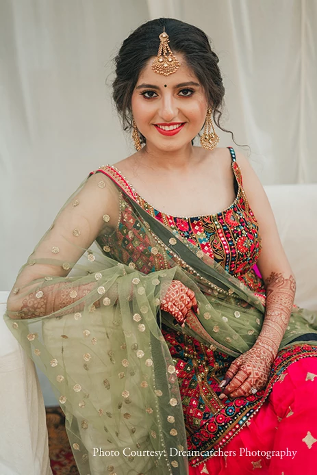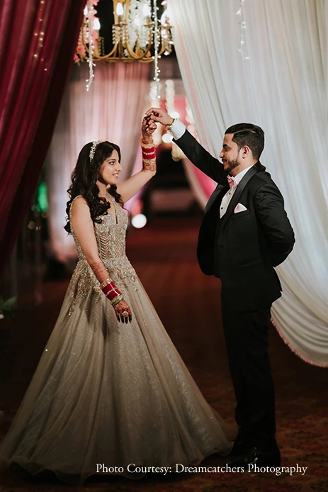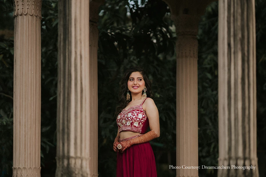 Dallas-based bride Gurpreet Dhanjal curated a riveting range of ensembles for her Mumbai wedding embracing both eclectic and traditional aesthetics that expressed her personal style. From unusual hues and eclectic designs to extravagant detailing and more, her trousseau has some inspiration for every bridal style, glimpses of which are shared below, shot creatively by WeddingSutra Favorite – Dreamcatchers Photography.