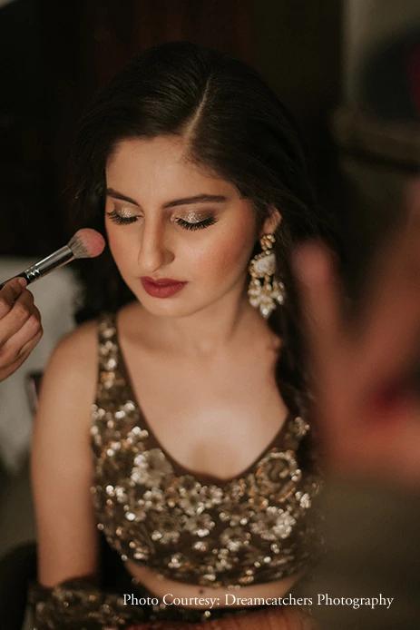 Gurpreet, a US-based Marketing Data Analyst, relied on a host of wedding websites including WeddingSutra besides other social media pages for the latest bridal styles and trends. She curated her wedding wardrobe from a number of bridal stores and designers in Mumbai and found all of her jewelry at Azotiique. The team of Preeti and Deepti from Makeup Missile gave her beautiful looks and hairstyles that subtly highlighted her natural features and transformed her into a radiant diva.
