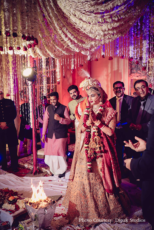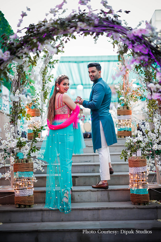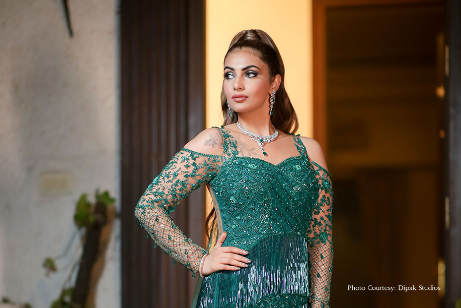 A skirt with a kitschy top, glamorous emerald gown, and an ombre lehenga fit for a queen, all made it to Innayat’s wedding wardrobe, thus ensuring that her trousseau was refreshingly diverse. Another highlight was how she gave herself standout beauty looks with her talent and expertise that paired perfectly with her outfits. Bride Innayat shares details of big day captured by WeddingSutra Favourite – Dipak Studios below.