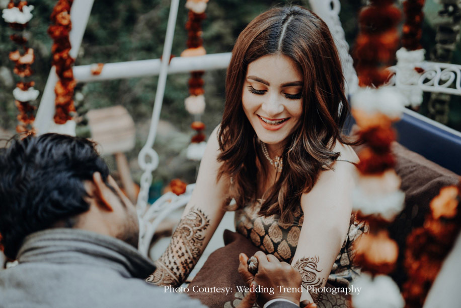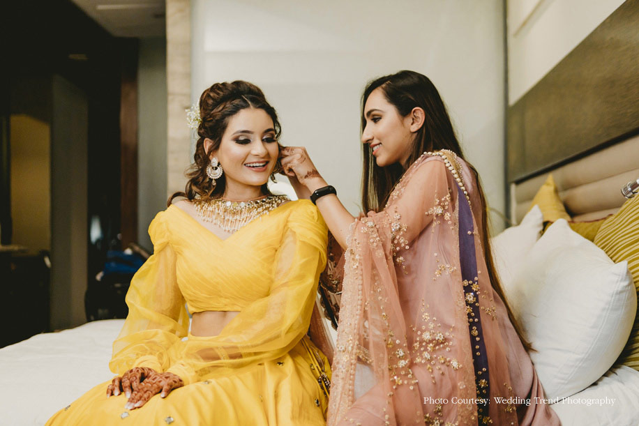 “I have a minimalistic style, which is why I stayed away from outfits and accessories that were too bold. I chose soothing colors for all three functions. For the mehndi, I wore an easy-breezy brocade sharara with noodle straps on my blouse. I completed the look with a classic choker and earrings set from Voylla. This was a small function at home, so I decided to do my makeup for this one.”