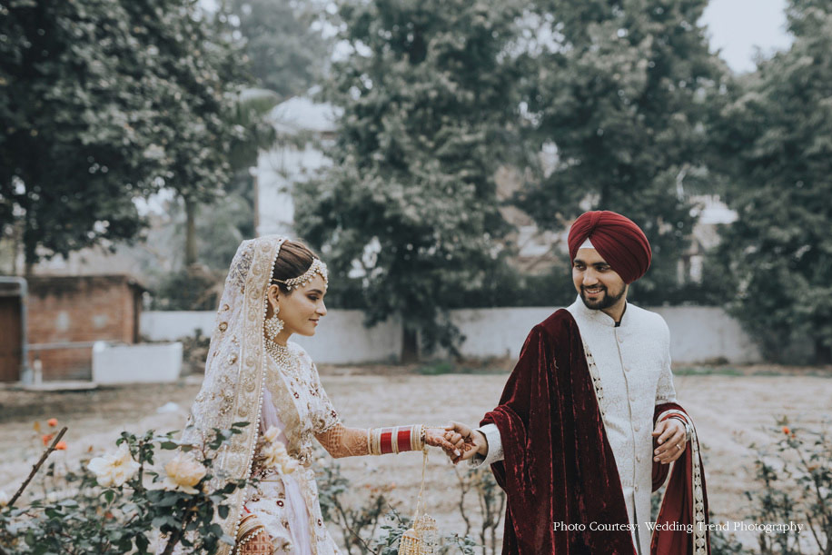 “My outfits for all the three functions were customized by Maksim by Simran. My experience of working with the brand was exceptional. She was the one who helped me plan all the outfits. All I had to do was tell her my requirements and ideas, and she turned them into reality! My husband and I are both animal welfare and rescue volunteers, so we decided to go for low-key celebrations, and use our wedding budget and ‘shaguns’ (monetary gifts) to help our furry friends instead. Our thought was reflected even in our minimal wedding invites and had a whole leaflet dedicated to animal welfare. It also had a QR code that the invitees could scan to donate at a local animal shelter. The invite was designed by The Mixed Fruit Jam, and I recommend them to everyone who’s getting married.”