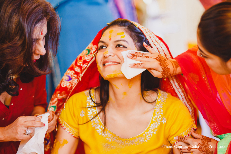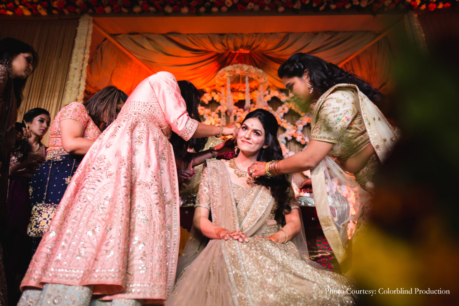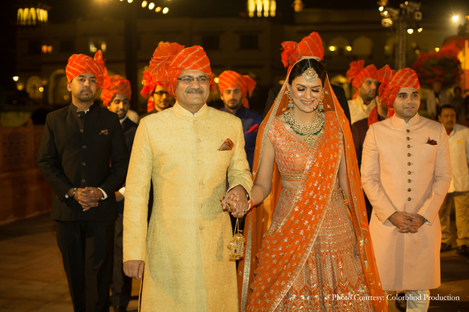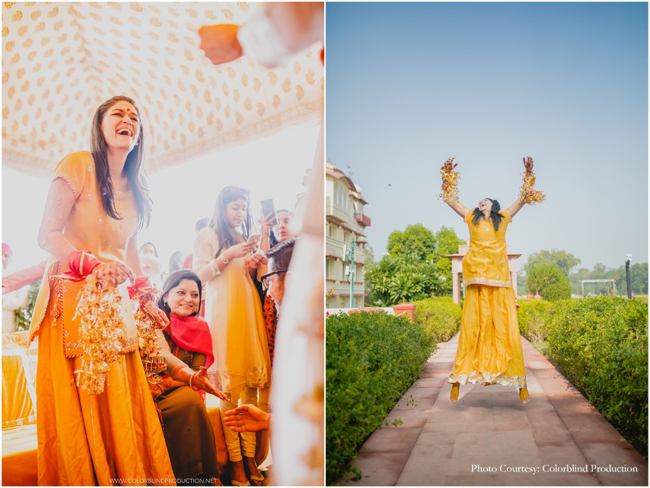 It was all about colors and interesting accents at Misha’s wedding celebrations at the Taj Jai Mahal Palace hotel in Jaipur, Rajasthan. From blooms in vases and ensembles, to standout jewellery carefully picked to complete every look, this wedding was all about quirky yet classy charm.