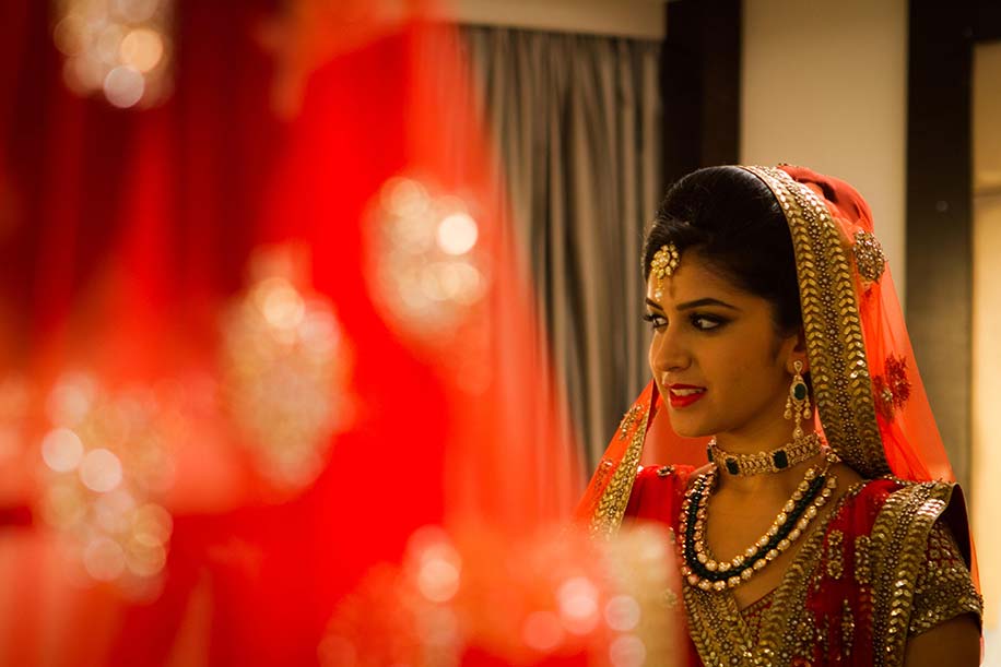 "My heart was stuck on Sabyasachi," says Priya about her stunning wedding lehenga in red and gold.