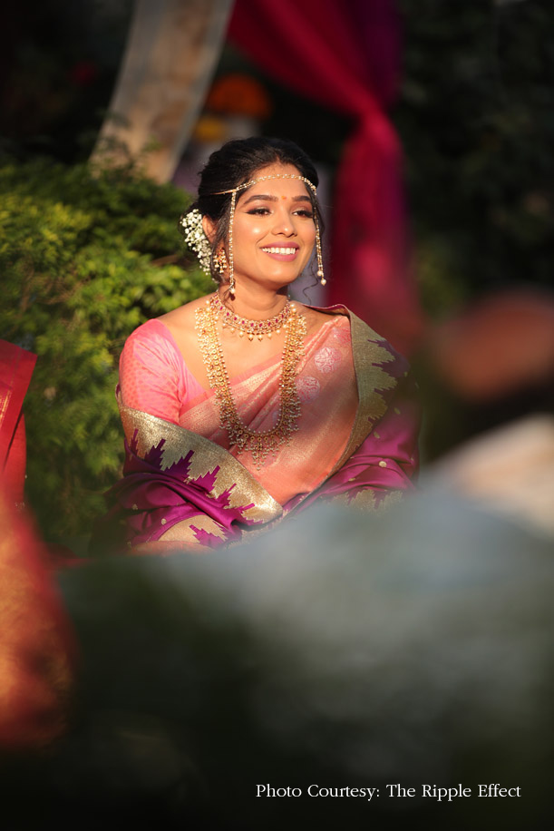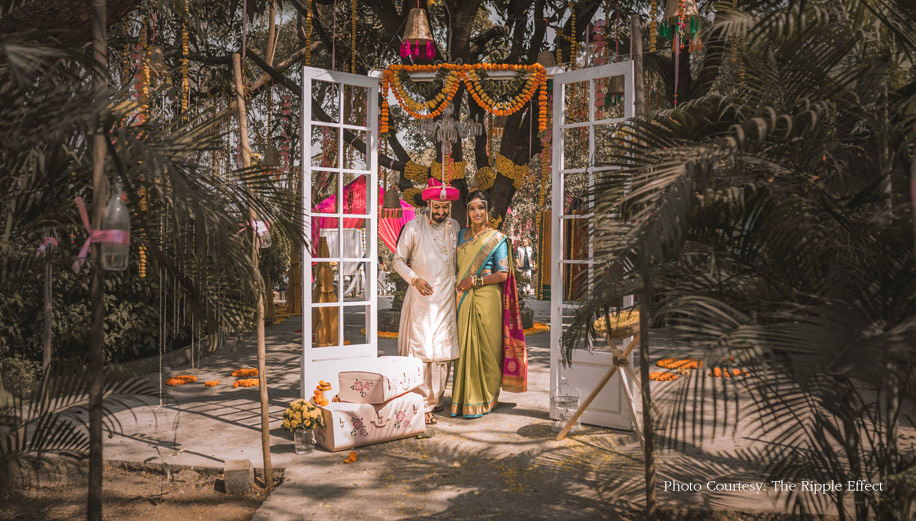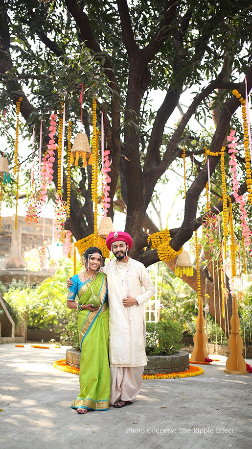 Priyanka shares, “Since my husband and I are practicing architects we both decided to design our own wedding. With the vision of having an authentic traditional Marathi wedding, we chose a venue that was lush with greenery – the Aarey Gardens. Also, we tried to keep everything as sustainable as possible.”