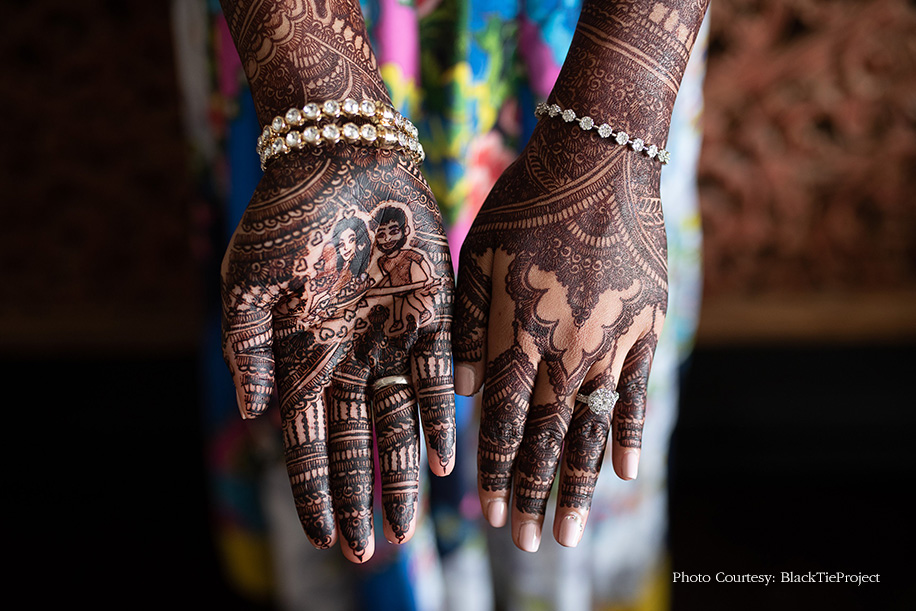 When deciding her outfits, Sherina sought inspiration for her looks from celebrity brides like Bollywood stars Anushka Sharma and Priyanka Chopra Jonas, and found all her outfits at premium wedding stores in Delhi. For her makeup looks, she chose to work with two artists. She wanted to glam up for her sangeet, wedding and reception, and booked WeddingSutra Favorite Sejal from Makeovers by Sejal for the same who gave her bold lashes and striking eyes. For her mehendi and boat party, Nui, a local makeup artist gave Sherina a glowing visage. The bride sported distinctive and immaculate hairstyles for all her functions, thanks to the talented Herman from Indonesia. The Bride chose WeddingSutra Favorite – Ima Habsyi to trace beautiful henna designs for her mehndi function.