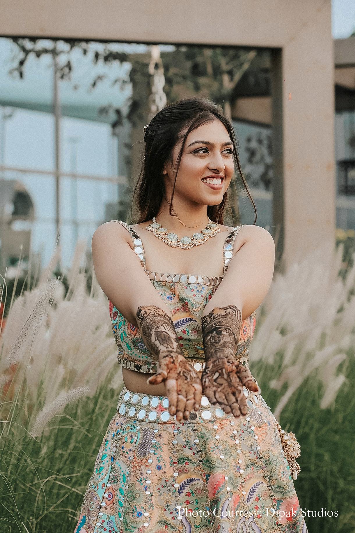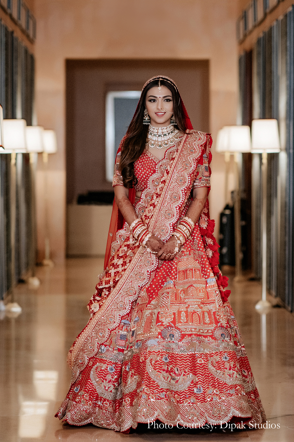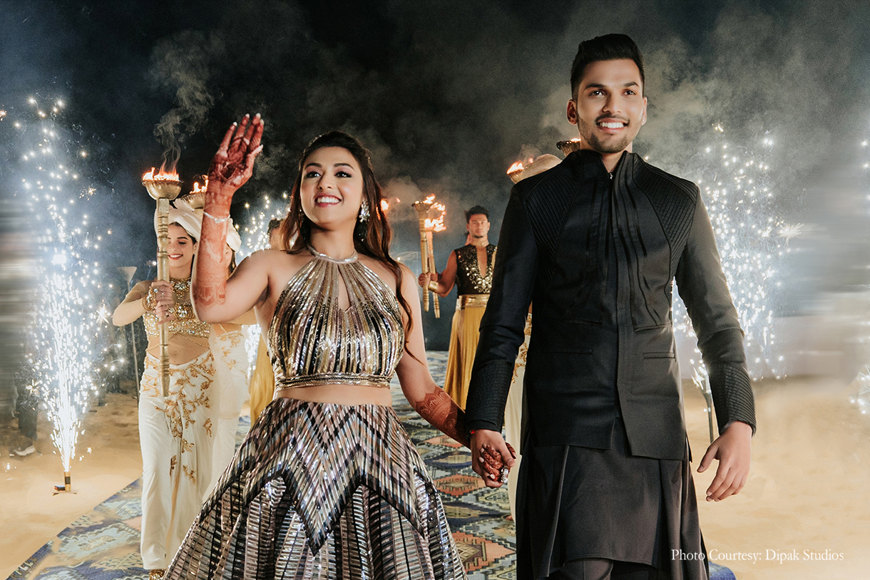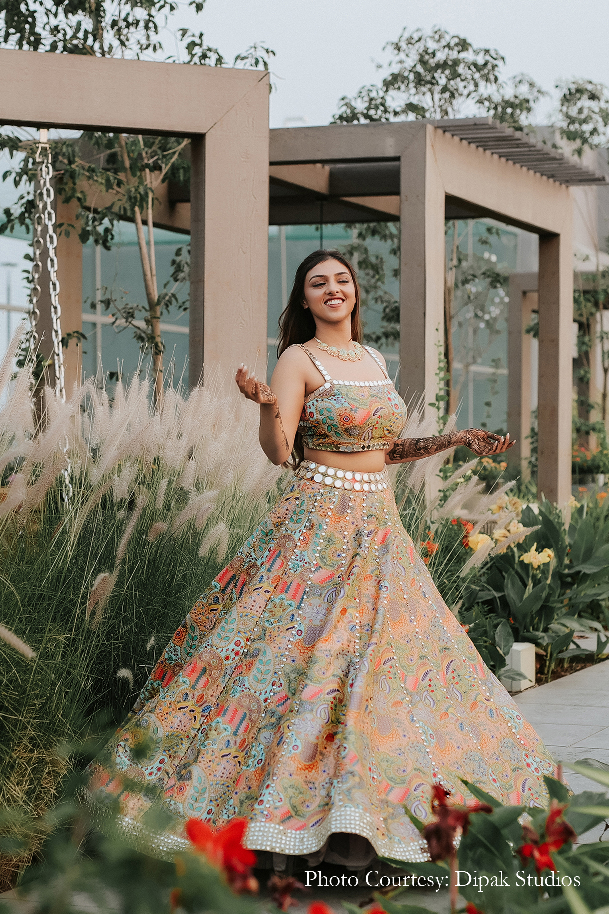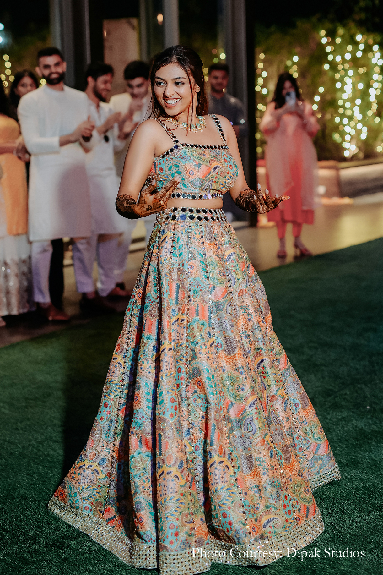 Fusing modern silhouettes with ethnic patterns, bride Shraddha Shah Raka’s bridal wardrobe ticked every box on the list. Be it gowns, traditional mirrorwork lehengas or lehengas with a modern spin – the bride left nothing to chance as she donned each of them with aplomb making a resounding statement at every event with her unique sense of style.