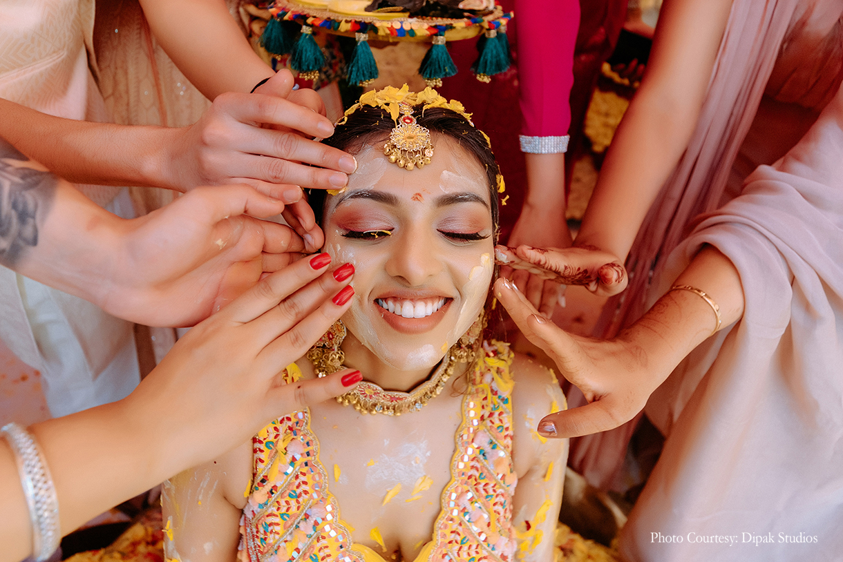 Bride’s Outfits: Papa Don’t Preach by Shubhika (Carnival), Seema Gujaral (Sangeet), Ginni Wadhwa (After Party), Marwar Couture (Wedding)