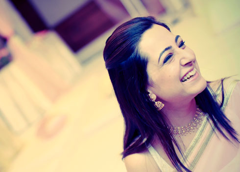 The reception had a very European feel with white dÃÆ’©cor, orchids and roses. I considered wearing a gown, but because I had mehndi on, I picked a very contemporary lehenga by Shantanu & Nikhil. The skirt of this lehenga had a fun feel and was very voluminous. It was a sheer material printed with blue, silver and light lilac patterns, but the white underskirt gave it a white/silvery look. The blouse was a metallic silver blouse, with a white net dupatta which had a combination of antique silver and bright silver motifs. This outfit needed a very modern set. My friend, Anand Datwani, owner of Kyra Jewelers in Dubai designed this. We first picked the shape and the kind of diamonds we wanted (round, pears, marquise). Then a shell was made and we actually got to place the diamonds in different places to get the right look. This is my favorite set as I was involved in its creation. I paired this outfit with two diamond bangles and silver Manolo Blahnik Peep Toe Pumps.