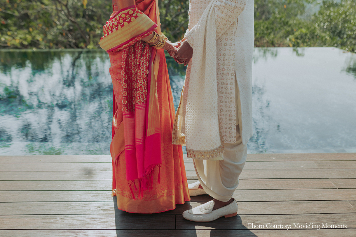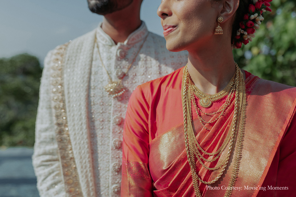 For Sydney-based couple Soniya Parulkar and Varan Perananthan, culture was at the heart of their love story. From a breathtaking helicopter proposal over Uluru to a destination wedding in Sri Lanka’s picturesque Weligama Bay, every moment was a tribute to their Indian, Sri Lankan, and Australian heritage. Photographed by WeddingSutra Favorite – Movie’ing Moments the union honored their diverse backgrounds by choosing a Sri Lankan Tamil priest who seamlessly blended Tamil wedding traditions with key Maharashtrian elements.