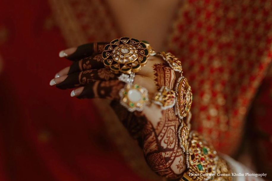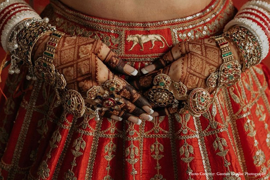 Bride’s outfits: Gaurav Gupta (Engagement), Bhumika Sharma (Haldi), Sabyasachi Mukherjee (Wedding), Jade by MK (Reception), Mishru (Mehndi)