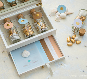 Gifting your guests food, snack or drink items are universally welcomed by people of all ages and cultures. Chocolates are a favorite option, and your delectable boxes can be displayed beautifully on a table setup or placed on each seat at a sit-down dinner. To add an element of fun interactivity, you can hang food gift packs from low hanging branches of trees, arrange a food bar with boxes of local treats if you are having a destination wedding, or adapt your edible favors according to the theme of the event you are planning to hand them out at.