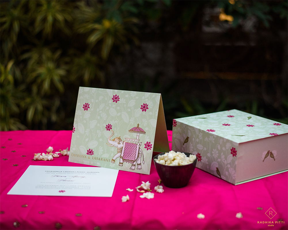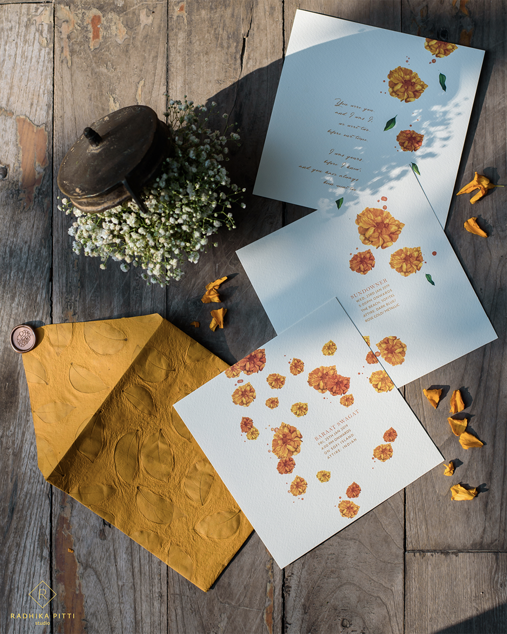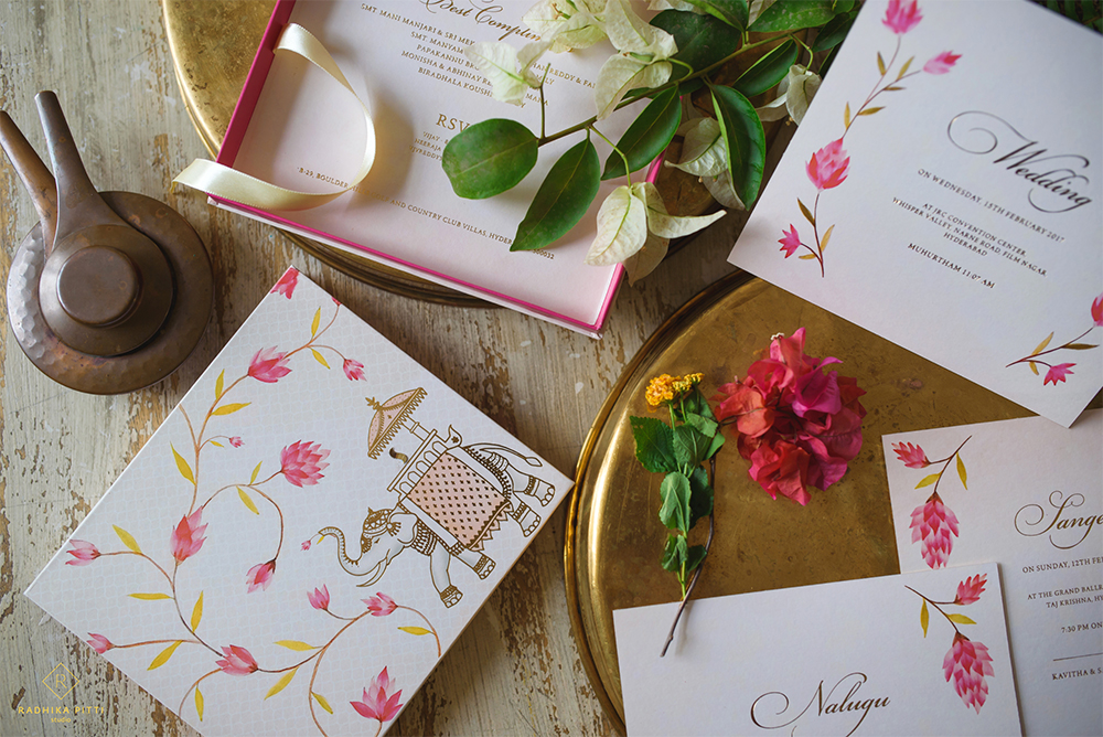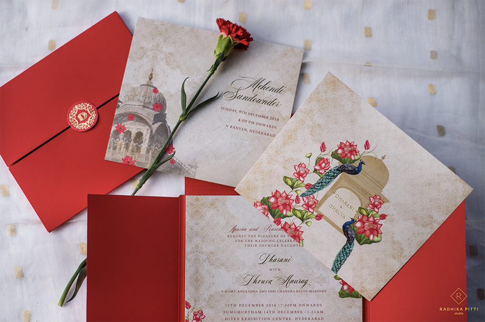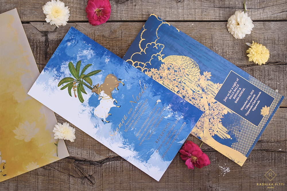 A boutique design and print studio based in Hyderabad, Radhika Pitti Studio specializes in bespoke wedding invitations. Drawing from her knowledge of design and aesthetics, Radhika founded her venture in 2014, working with the beauty of print. The brand thrives on the joy minute details can bring to special occasions through design and creativity. Constantly perfecting their craft, the brand today offers their services for video invites, personal stationery, corporate branding, social media design and packaging.
