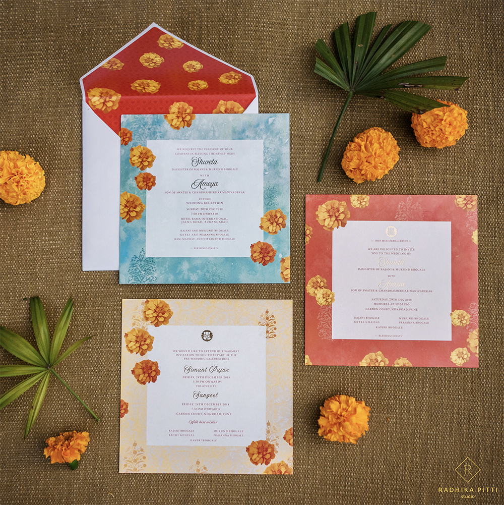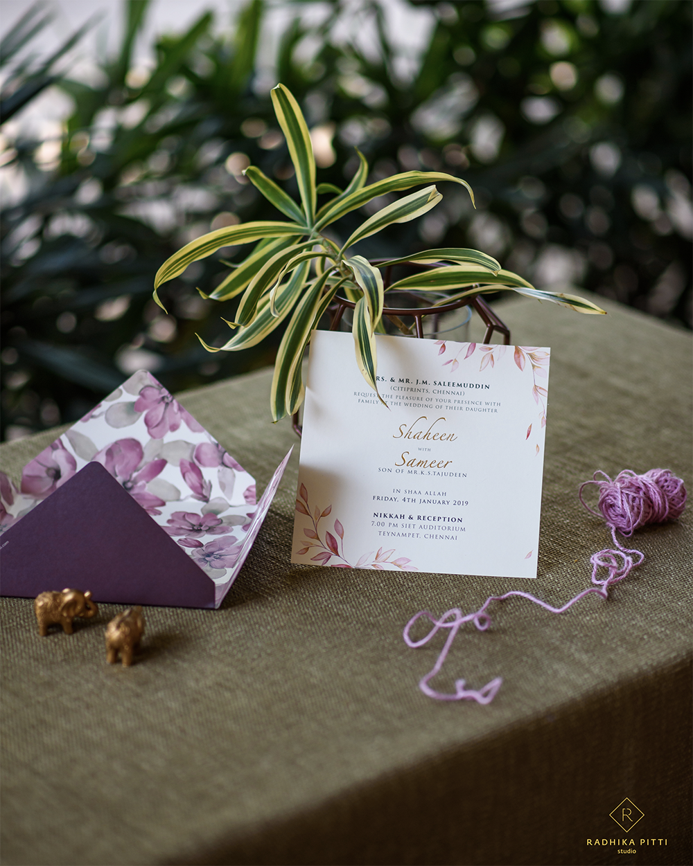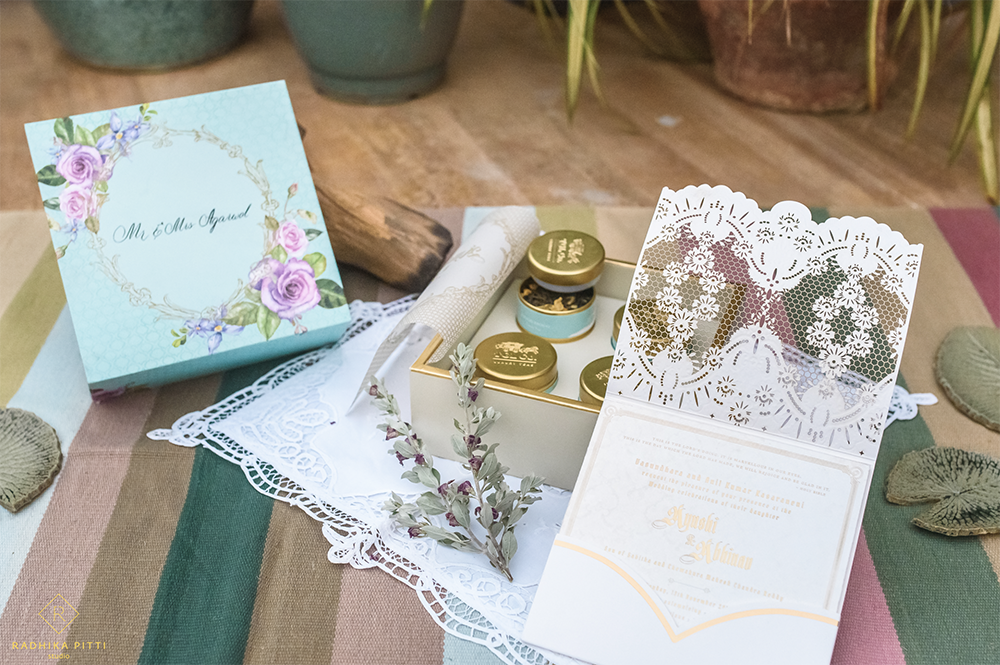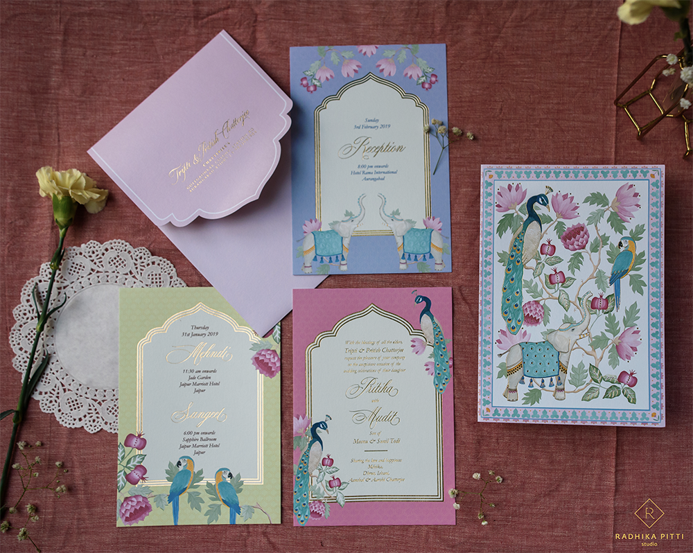 A boutique design and print studio based in Hyderabad, Radhika Pitti Studio specializes in bespoke wedding invitations. Drawing from her knowledge of design and aesthetics, Radhika founded her venture in 2014, working with the beauty of print. The brand thrives on the joy minute details can bring to special occasions through design and creativity. Constantly perfecting their craft, the brand today offers their services for video invites, personal stationery, corporate branding, social media design and packaging.