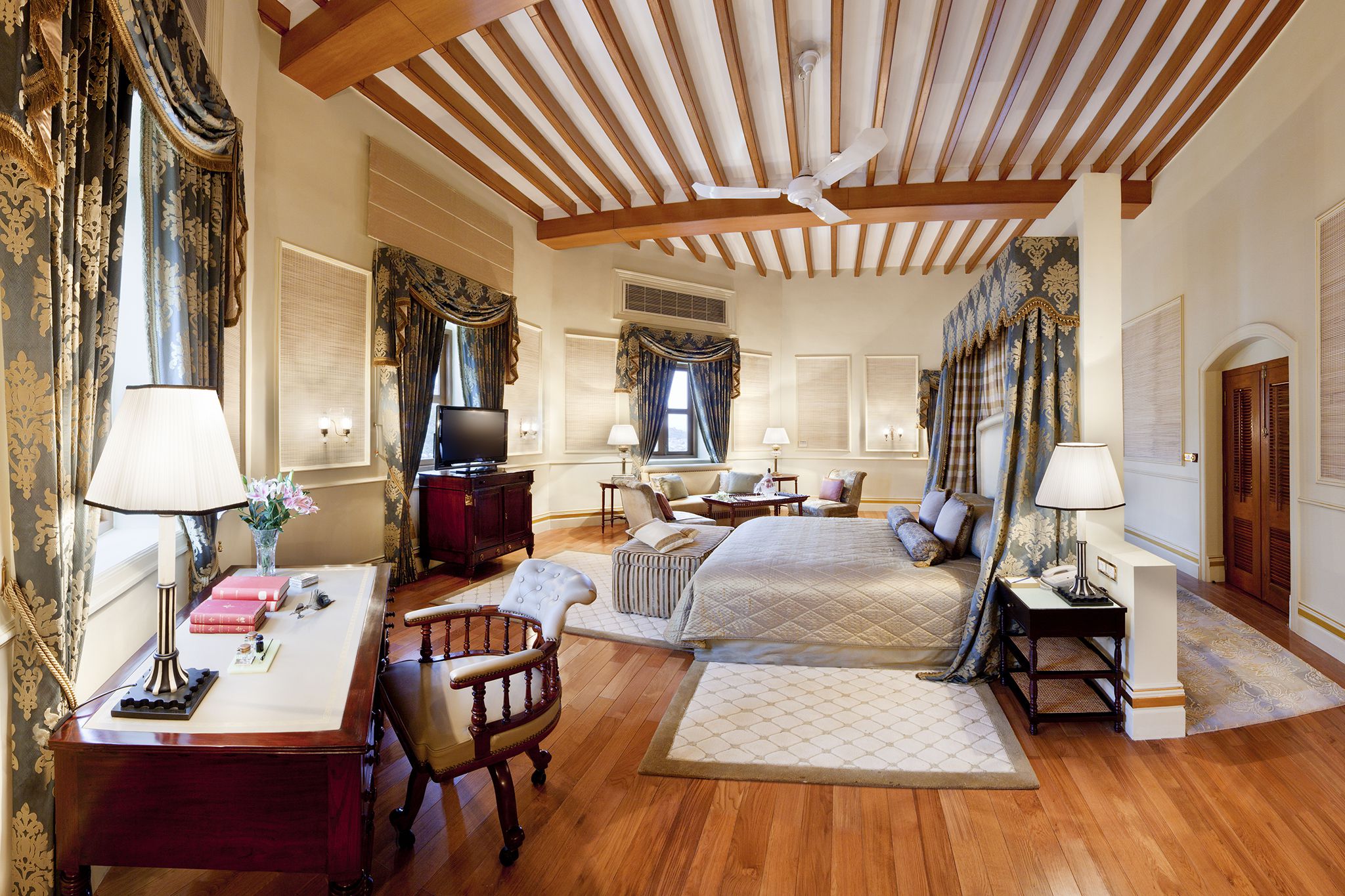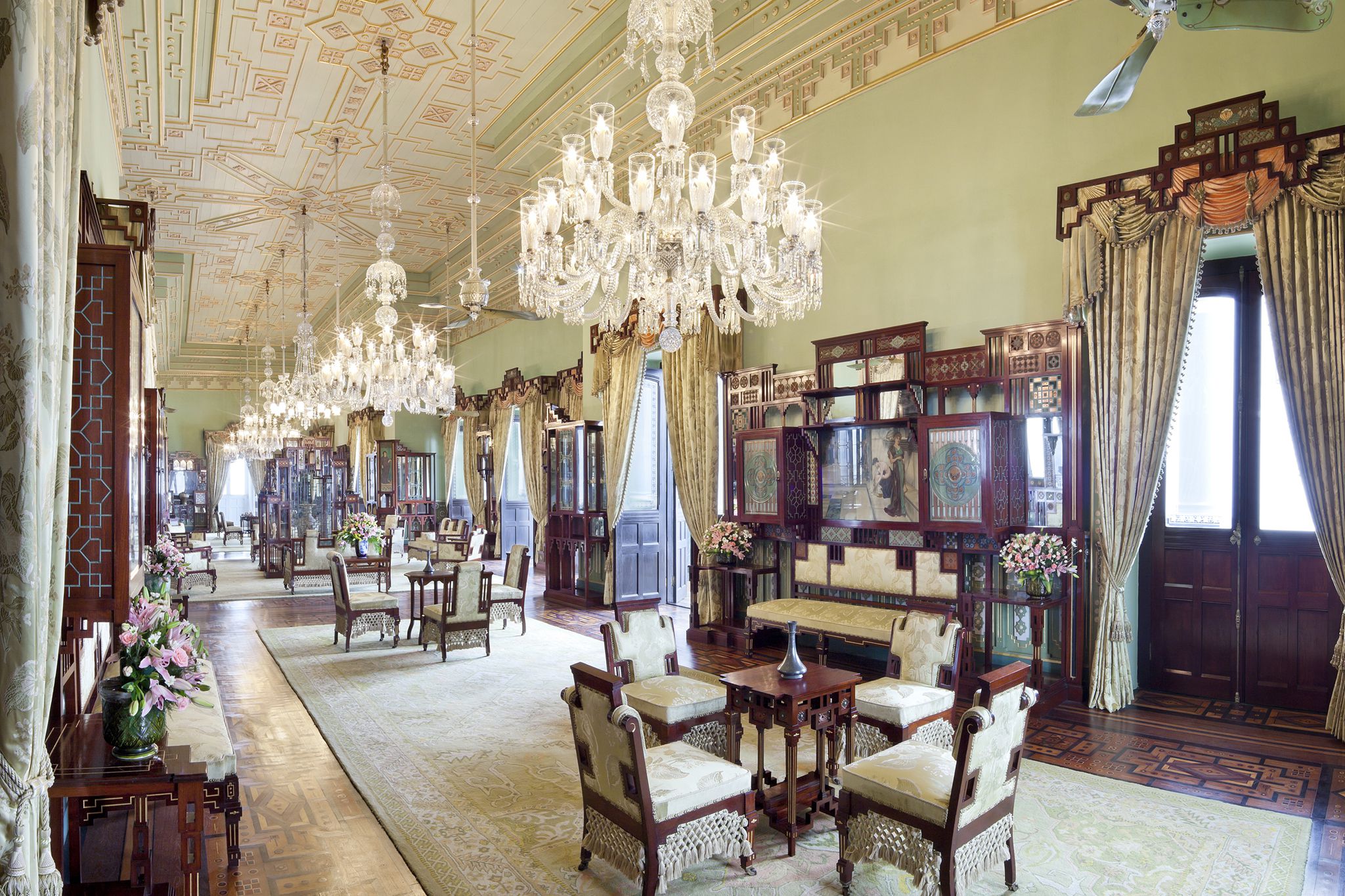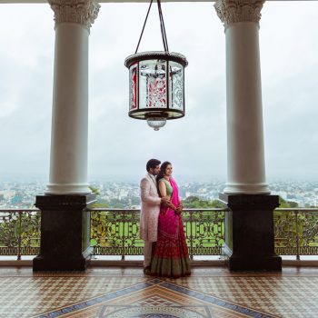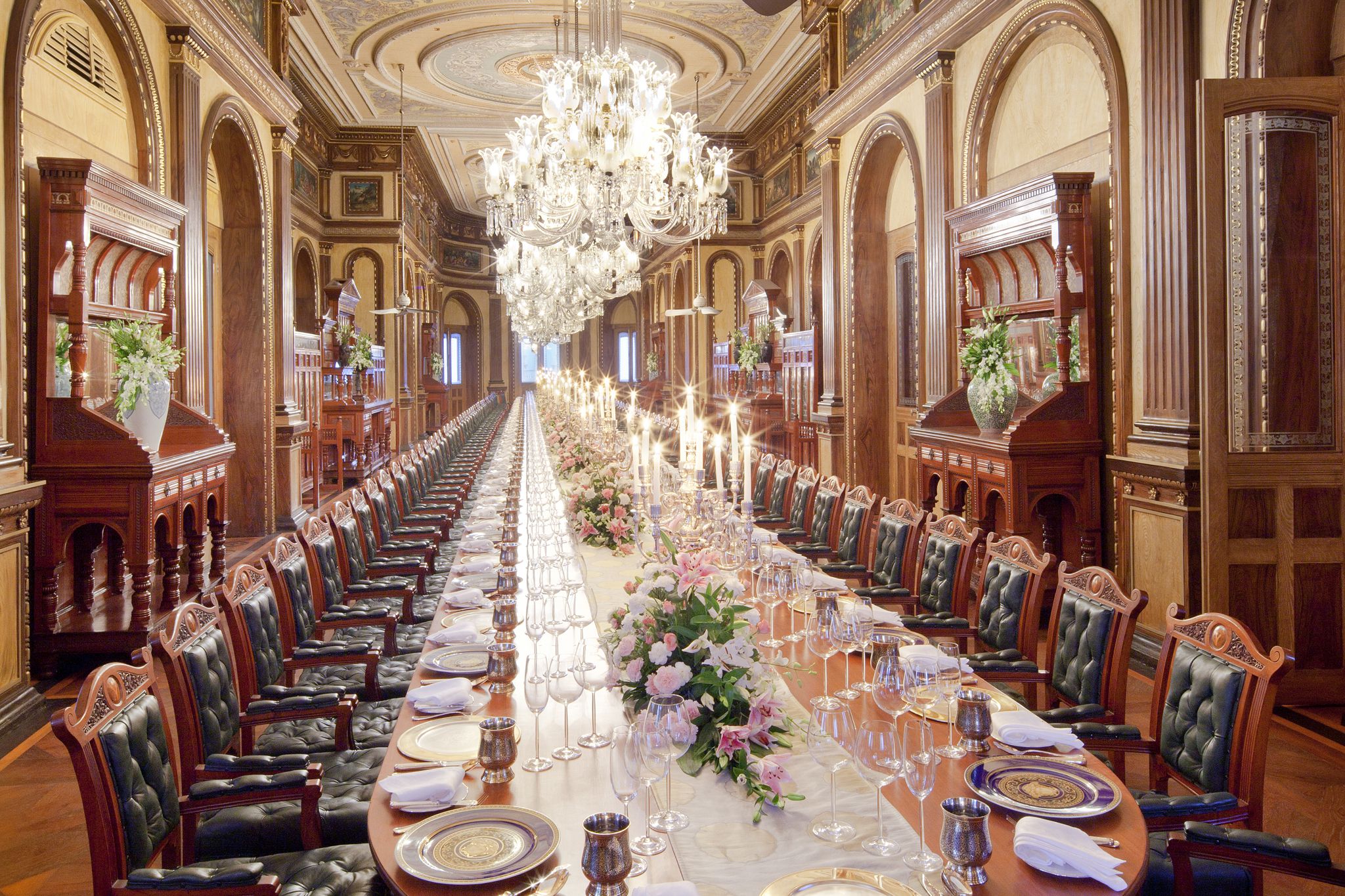 Perched 2,000 feet above the city of Hyderabad, Taj Falaknuma Palace is a jewel amongst the clouds. Living upto it’s name, ‘Falaknuma’ translating to ‘Mirror of the sky’ in Urdu, there’s a great celestial touch in the palace’s design & architecture. Guests get a royal welcome at the Neo-Classical style entrance of the Clock Gate & are transferred to the palace in horse-drawn carriages. The opulent Ballroom, the Durbar Hall, with ornate glass chandeliers, gilt-edged detailing & warm tones is 66x30x15 ft in area & can host upto 110 guests. Match this royal exchange of vows with noble delicacies at the world’s largest dining hall, the 101 Dining Hall.There are palace weddings & then there are Falaknuma Palace weddings.