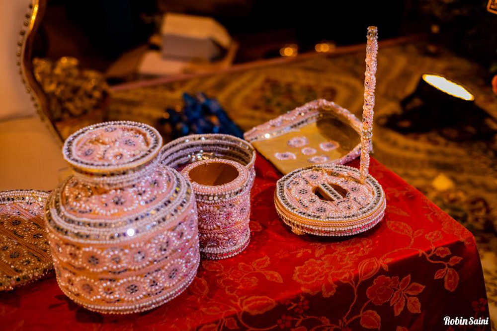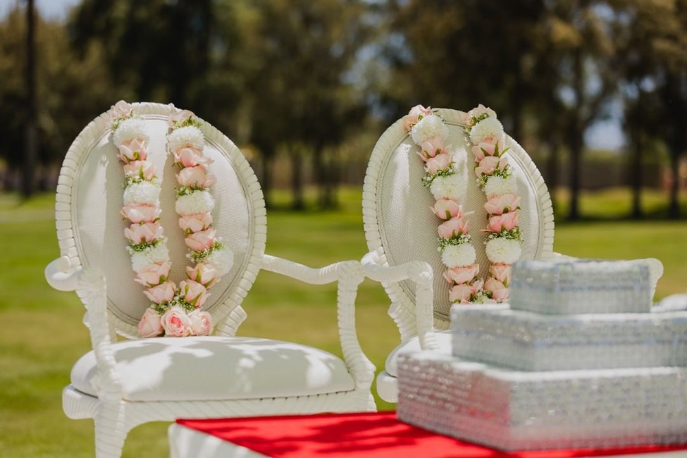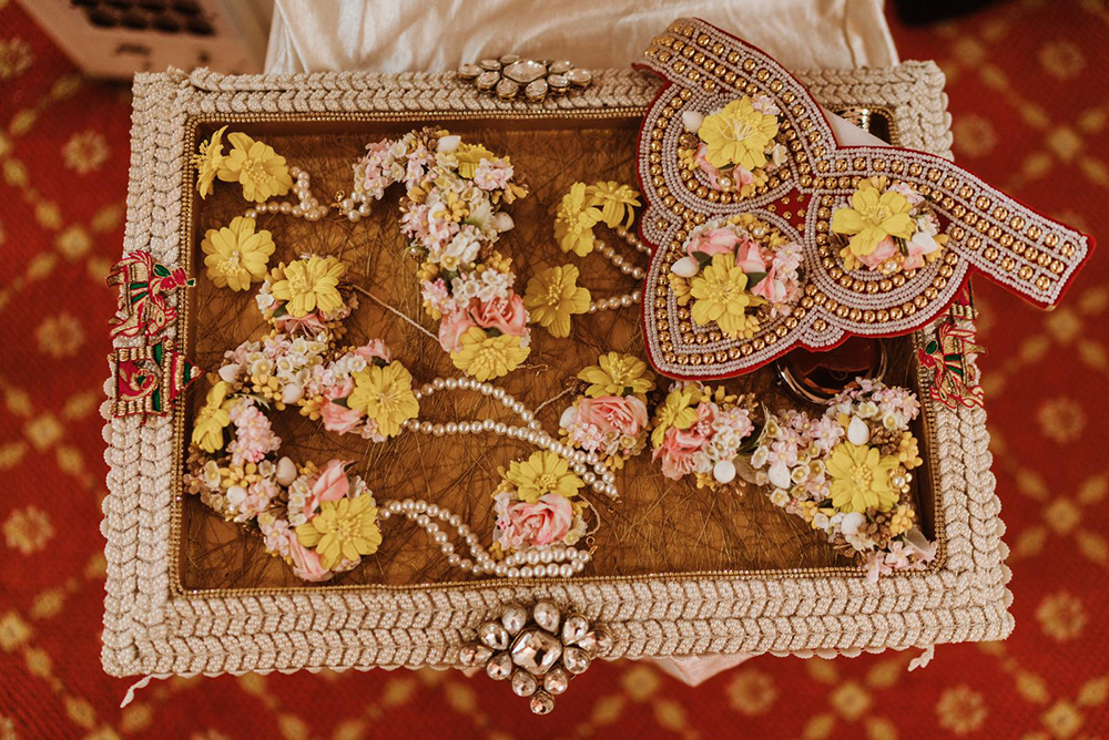 Aarna Accessories offers a large selection of items for weddings and other events such as Artificial Floral Garlands, Artificial Floral Jewellery, Vinri and Cushion Covers, Trousseau Packing Services, Puja Thali Sets, Mehndi Gifts, Thank You Gifts, Welcome Room Hampers, Graphic Designing Services, Bochni Tray, Dattar Thaal, Fancy Envelopes and Bags, Boxes, Shawl Covers, Wedding Favors, and much more. Made entirely from artificial flowers, their garlands and floral sets offer a dazzling array of designs for haldi, mehndi, and wedding celebrations.