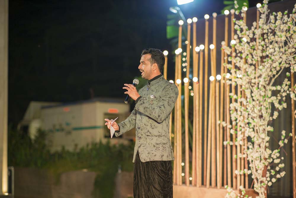 Elevate your special moments with the charm and wit of Anchor Hardik Vaidya. Based in Mumbai and an NIT alumnus and former engineer, the award-winning Anchor is a Voice Over Artist, Podcaster, and performer, all wrapped up in one explosive package. The ultimate emcee for any celebration, he is renowned for his versatility, dynamic presence, and spontaneity. Having hosted scores of events of all sizes and significance, he brings his ready wit and energy to every single shindig.