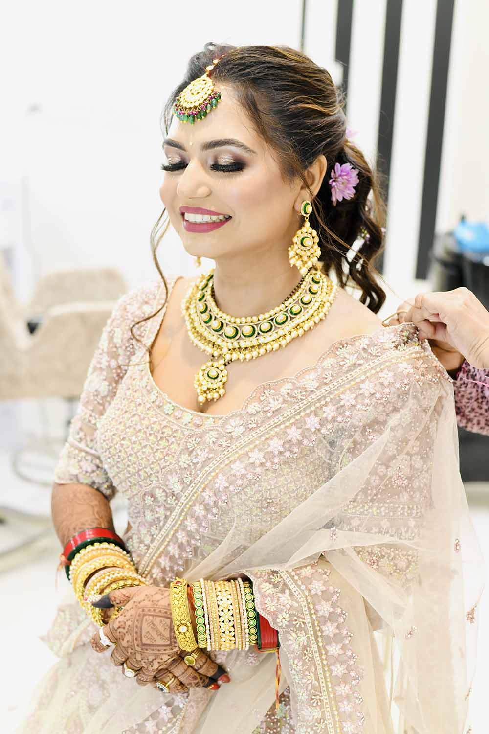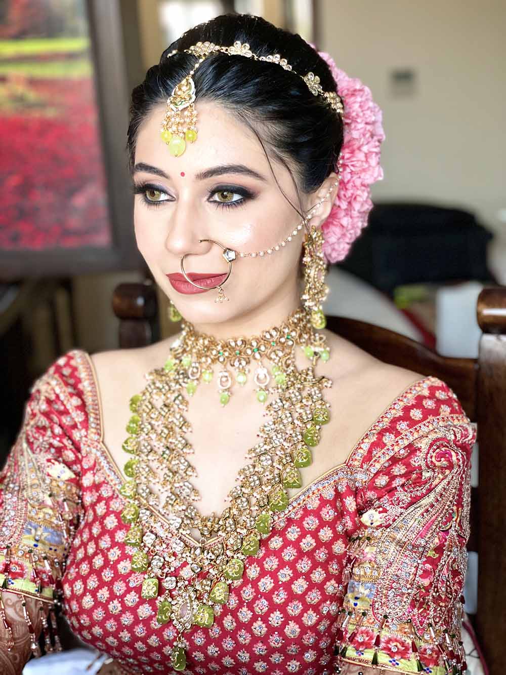 Taking pride in her ability to give brides stunning makeovers that enhance their natural features, Ashmieta makes her clients the most beautiful versions of themselves. Possessing a calm and comforting aura while offering top-notch services, her skills range from crafting a simple yet long-lasting look to flawless airbrush makeup. With over five years of work experience in the field of makeup, she has worked on more than 600 brides to date which leads her to keenly understand a bride’s needs on her big day. Her expertise is not bound by distance either – be it at Jaipur, the city she operates from or any other wedding destination you have in mind. Using high-end brands, like, Anastasia Beverly Hills, Charlotte Tilbury, Giorgio Armani, Too Faced, Tarte, NARS, Fenty Beauty, Huda Beauty, Laura Mercier, Dior, Inglot etc. she ensures that her clients have a seamless experience on the makeup chair as they gear up to put their most stylish foot forward.