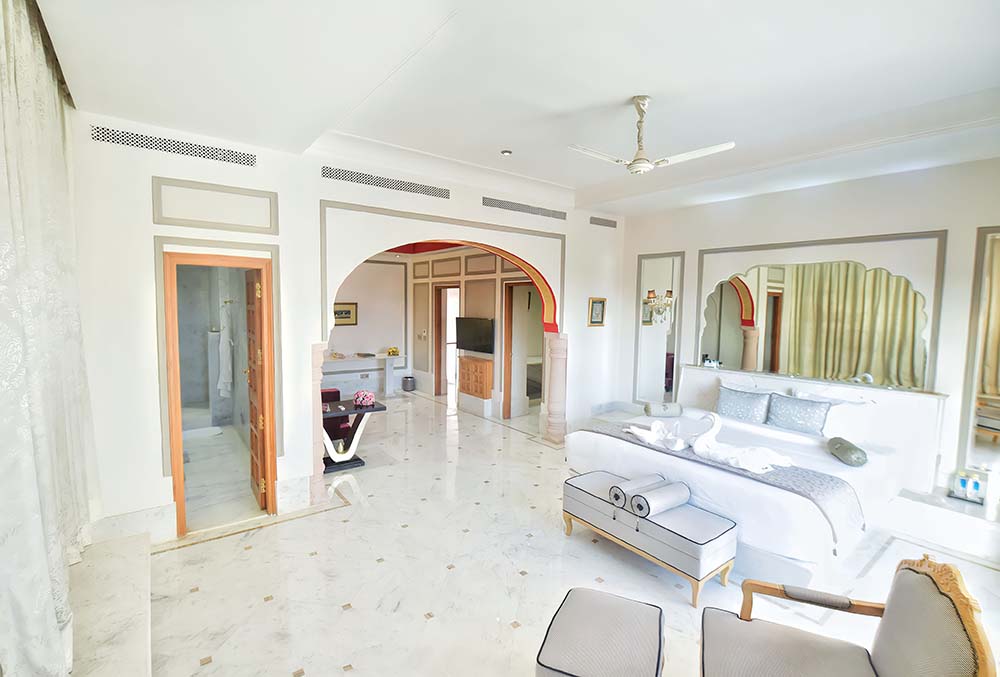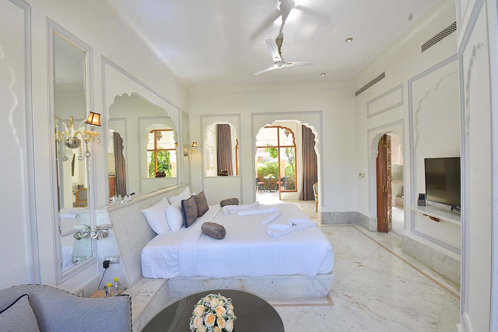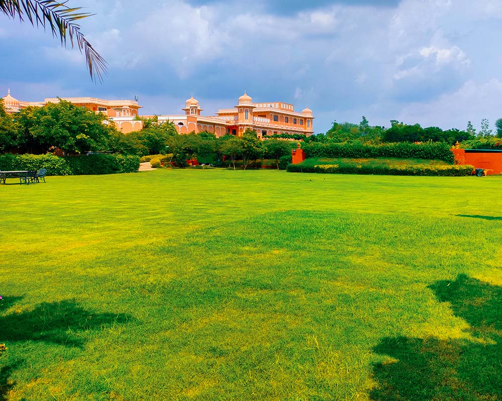 Encompassed by serenity, clement weather and the enthralling views of the majestic Aravalli Hills, Buena Vista Luxury Garden Spa Resort bestows guests with an enamouring blend of French and Indian architecture. This heritage resort in Jaipur is spread across an area of 22-bigha land. In addition to 52 villa suites with private pools and lush green gardens & 25 Palatial Suites, a 9-hole golf course, the hotel offers endless amenities with indoor/outdoor pools and a temperature-controlled pool at the spa, and opulent services at Buena Vista Resort & Spa.