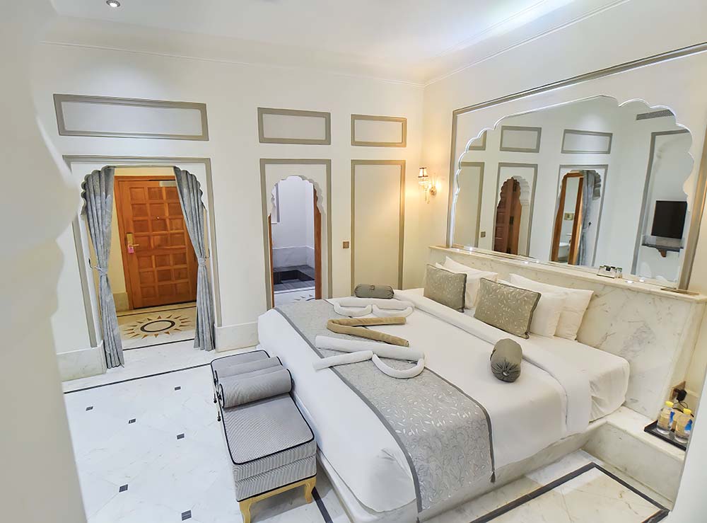 The Buena Vista Luxury Resort seamlessly fuses the intricacies of the French lifestyle with Indian tradition. Equipped with a variety of villas that come with their own private swimming pool and garden, this resort is bound to make your wedding guests feel indulged. Designed in a traditional Rajasthani style, the resort’s architecture gives one a picture-perfect backdrop at every event. Plus, its variety of in-house venues are highly adaptable to every vision. Host a cheery haldi by the pool, a garden-based mehndi or a plush wedding under the stars -at Buena Vista, all your plans come to life in a luxurious way. Knowing that Indian weddings are incomplete without gastronomic delights, your guests and you can also treat your taste buds at the hotel’s Indo-French fusion spread. While the poolside Aurora Pool House offers scrumptious meals round the clock, the Le Gourmet takes you on an artistic culinary journey. On the other hand, the Le Gourmet Terrace is a multicuisine restaurant ideal for a large party where everyone has their own taste. For the night owls, the Nolita Sky Bar makes you reaffirm your faith in fairytales as you revel with your partner under a sky full of stars. The Flamingo Night Bar, however, is more suited for those who wish to let their hair down and party with innovative cocktails in their hands!