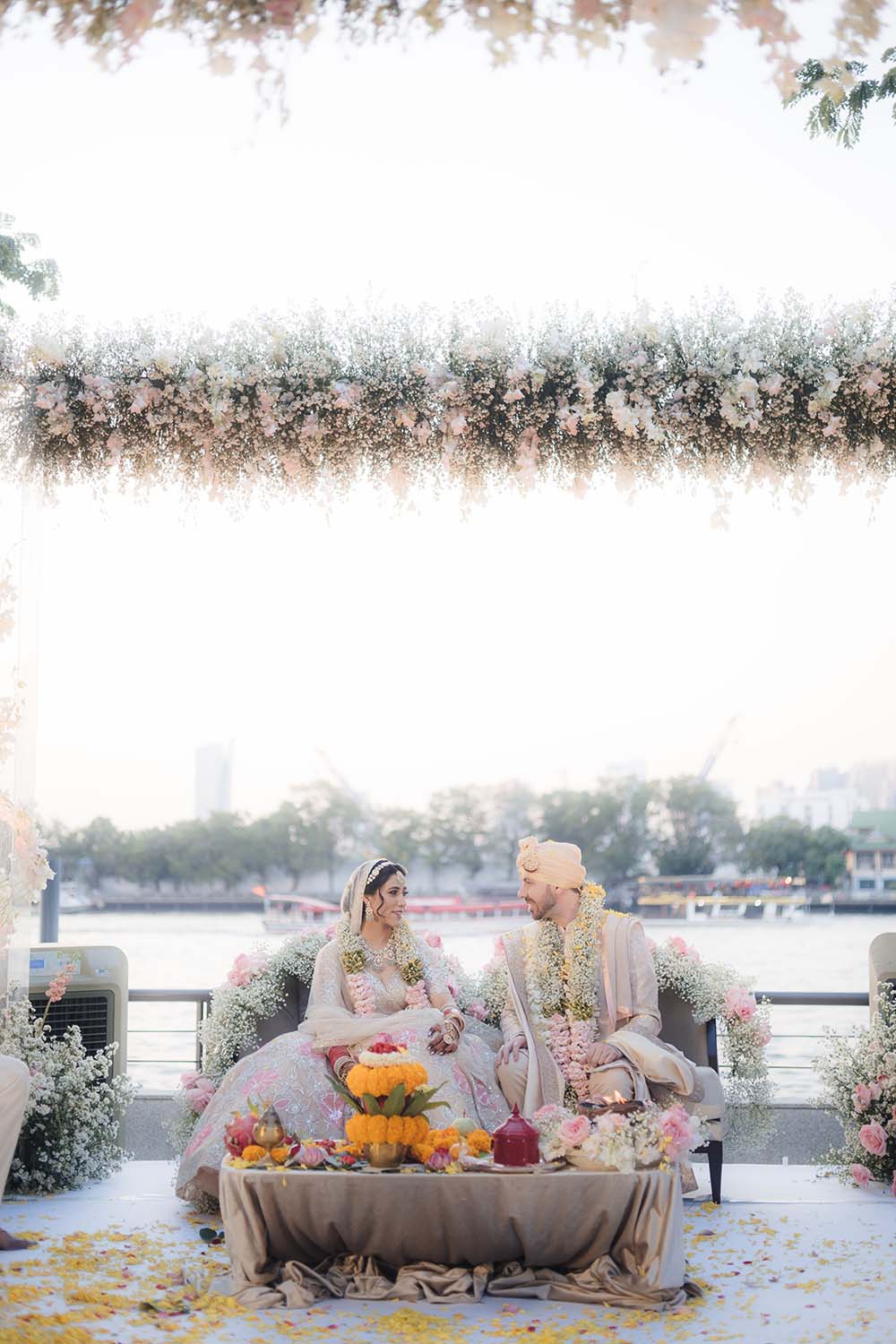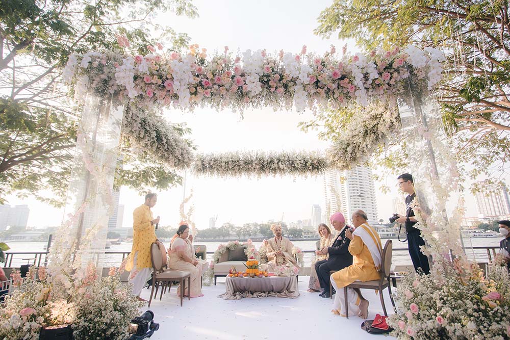 Celebrate your dream wedding at Capella Bangkok, a stunning riverside destination on the Chao Phraya River that beautifully blends traditional charm with modern elegance. Ideal for Indian couples, this resort-style hideaway offers everything you need for a grand celebration, including exquisite Indian and vegetarian cuisine. Your guests will delight in panoramic river views from the courtyard, which offers an idyllic setting for a vibrant Baraad parade and a memorable Mandap ceremony.