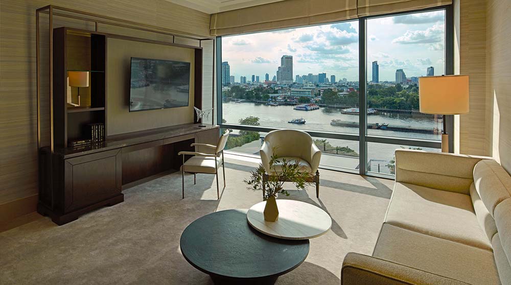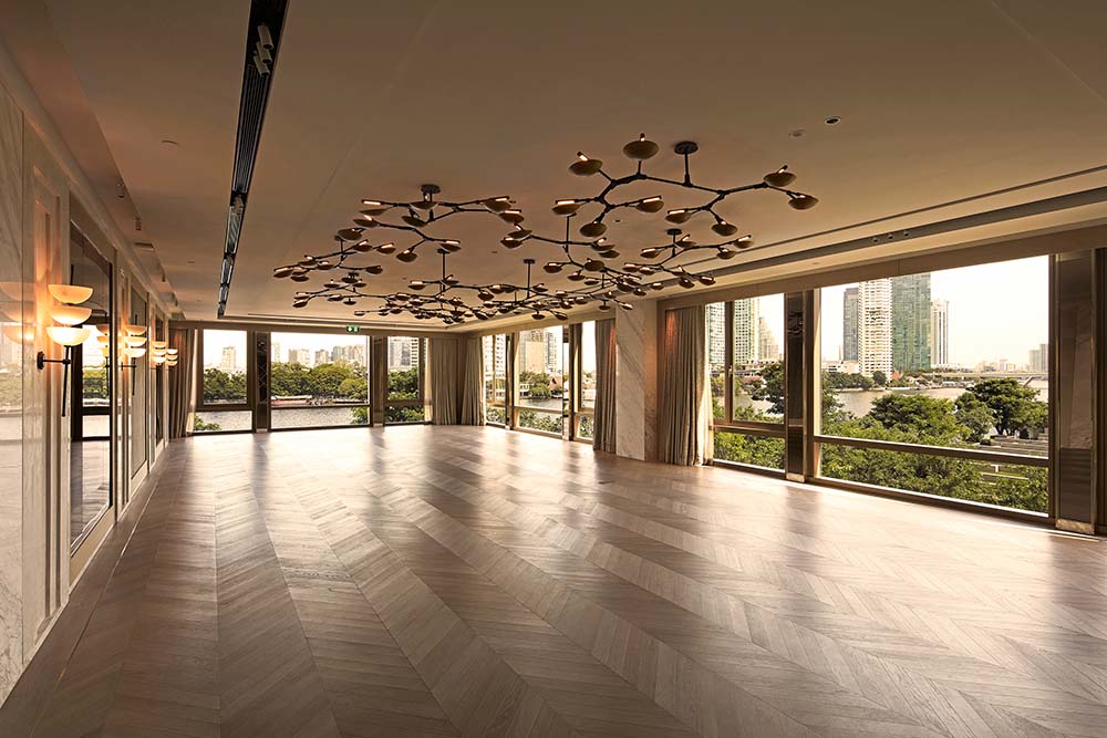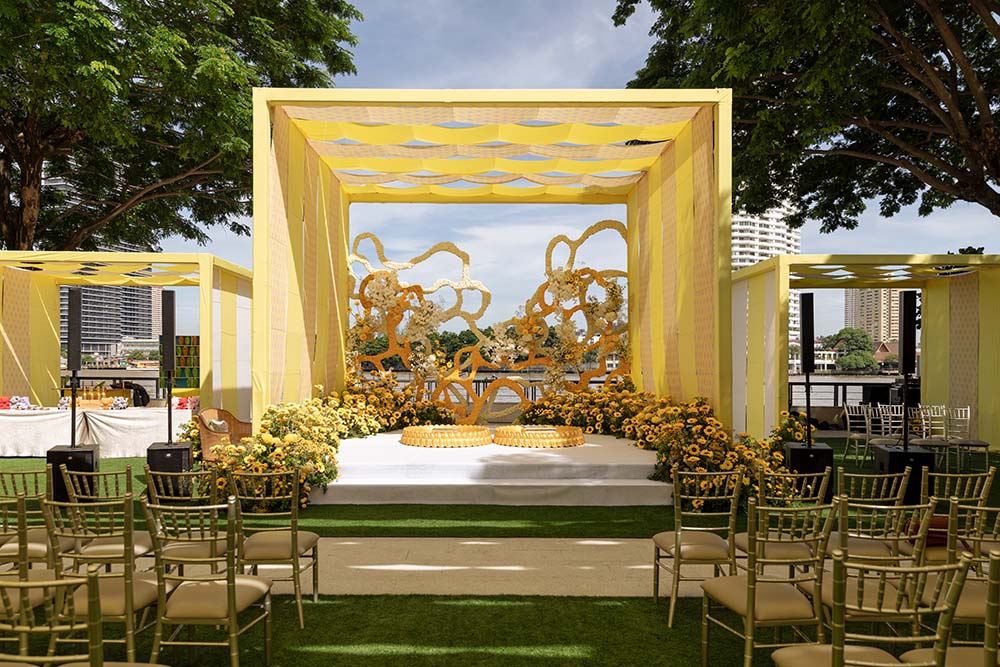 For events of a more intimate size, the Atelier can accommodate up to 110 guests and offers similarly panoramic views of the river. Couples dreaming of an outdoor wedding will find their special spot in the Courtyard, which offers a stunning alfresco garden overlooking the river, with space for up to 200 guests to gather in style. Alternatively, unforgettable nuptial journeys can begin aboard a refined riverboat cruising the Chao Phraya. This unique vessel is ideal for chic celebrations with up to 80 guests, making it an extraordinary choice for your special day.