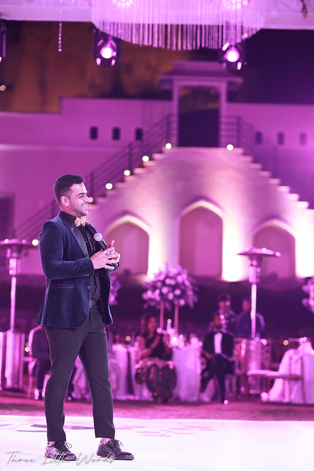 Chirag Vithalani is not just an anchor; he is an artist who uses his skills in theatre and dance, bringing spontaneity and wit to keep the guests hooked.