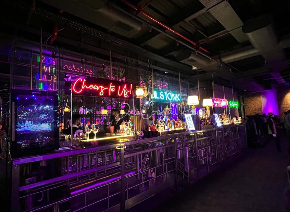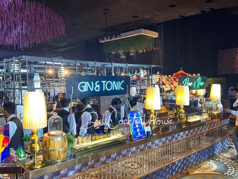Founded in 2018, Deli Cocktail House is a bartending company based out of New Delhi which offers a variety of services that range from cocktail bar catering to molecular bar catering. Aiming to make the craft of creating cocktails a personalized experience, Deli Cocktail House ensures everything is absolutely perfect regardless of the scale of your event – be it a special couple’s date night or a 1000 pax gathering! Specialising in exclusive theme-based bar setups amplifies the ambience of the event, they easily orchestrated a bar space that puts your guests at ease while doling out lip-smacking drinks. Using larger-than-life elements and personalised menu items that adapt to your whims, they ensure your event is in high spirits. With Quirky Quotation illuminating, Speakeasy Cocktail Bar Catering is one of the signature Bar Setups by Deli Cocktail House. Needless to say, the setup visually indulges the guests as if they are having a drink at an authentic Californian Speakeasy Bar.