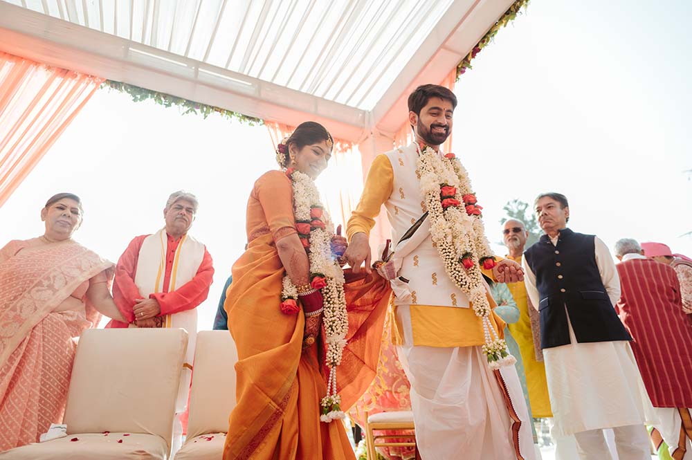 Blending artistic creativity with a minimalistic aesthetic to create stunning visual narratives, Dhaarna Bhola Photography harnesses the beauty of raw emotions. Whether it’s the subtle exchange of glances, the joyful laughter shared with loved ones, or the tender moments between the bride and groom, they are committed to capturing these priceless instances with authenticity and grace. With a team of passionate photographers and cinematographers with a keen eye for details, they exceed your expectations and deliver images that encapsulate the essence of your love story.