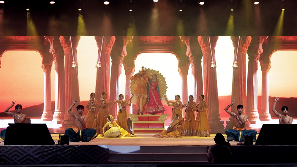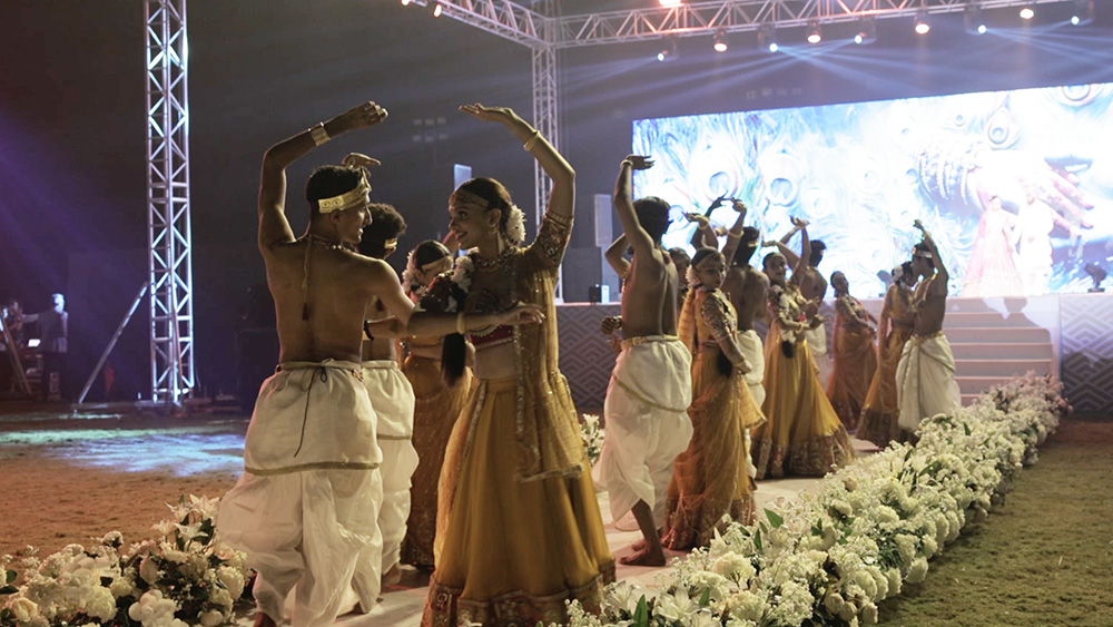 1. Captivating Performances: The concept includes a troupe of 12-15 professional dancers who perform intricate and graceful routines throughout the Varmala ceremony. These dancers take on captivating characters such as Radha and Krishna, two of the most revered figures in Indian mythology, embodying the spiritual and romantic essence of the union.