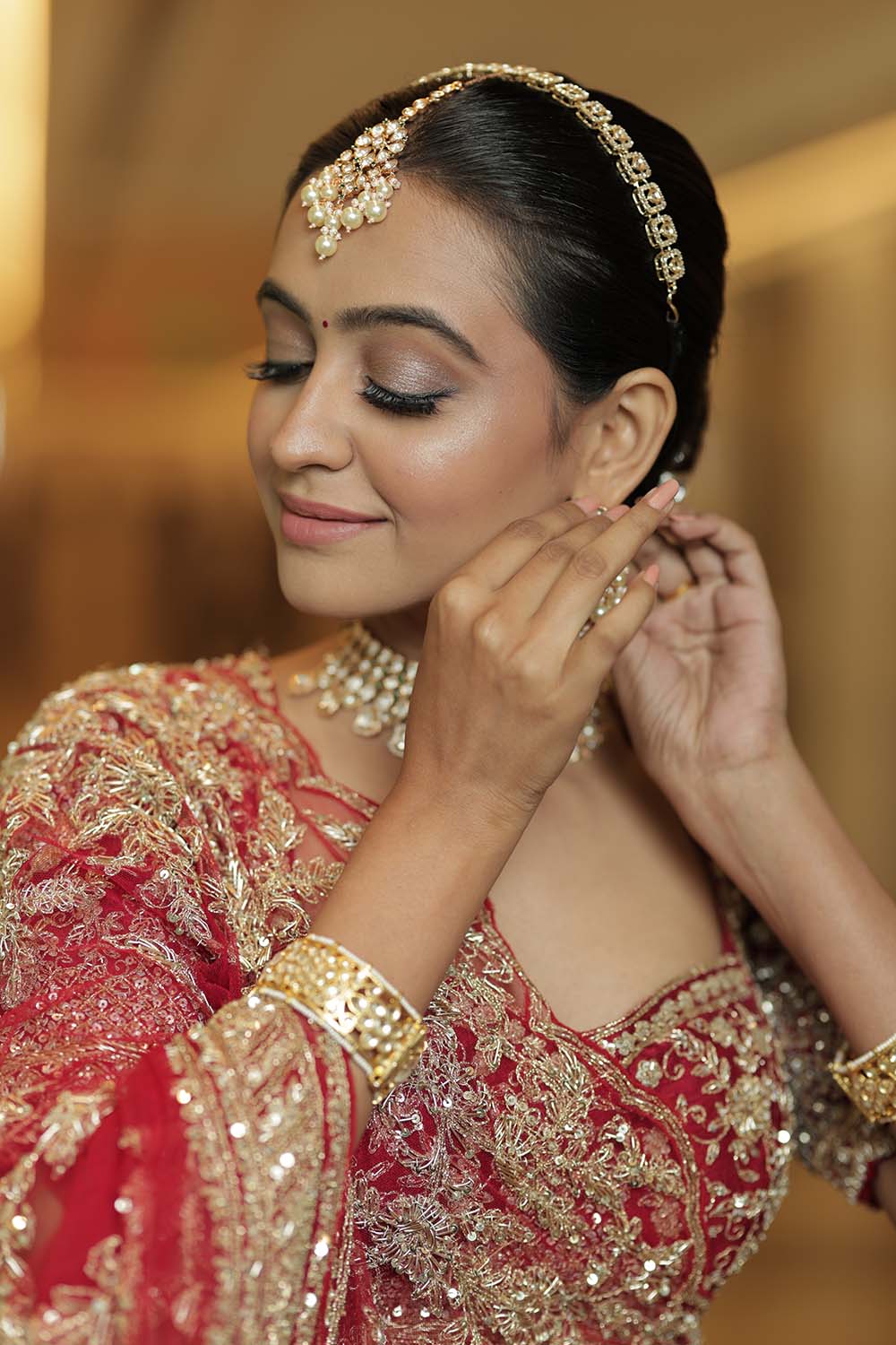 Divvya Shrigiriwar is a renowned minimal makeup artist based in Mumbai. Celebrated for her elegant and understated approach to beauty, Divya’s style brings forth the unique beauty of each of her brides. Enhancing natural features and using top brands, her artistry combines the bride’s style with her skills to create looks that are comfortable, sophisticated and long-lasting. Her expertise in soft glam and contemporary bridal looks makes her a top choice for brides who seek a refined, timeless look. Divvya’s talent has taken her across the globe, making her available to clients worldwide.