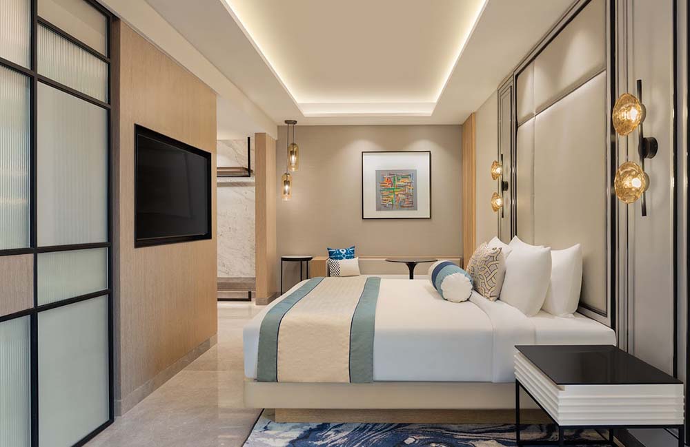 Conveniently close to the Chhatrapati Shivaji International Airport, this hotel possesses an in-house culinary team that is versatile to every palate, more than 6,200 sq ft of space for various wedding events, state-of-the-art AV equipment, multiple in-house dining options and a rooftop infinity pool. Its 205 rooms and suites with plush views of the city and dynamic views of the runway keep your guests engaged as they gear up for your big day.