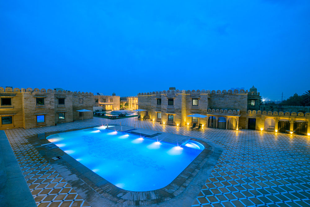 Anticipating its patrons’ needs, Fort Rajwada also offers several gastronomical delights with the multi-cuisine Sonal restaurant, the well-stocked Paatu Bar, and the Roopal – a 24-hour coffee shop that also offers snacks and meals that cater to your late-night cravings. And if there’s romance on your mind, you can also partake of their ‘Romantic Desert Affair Package’ where you can whisk your partner away to experience a private romantic dinner under the star-studded sky, a mini jacuzzi session, and a sunset camel safari. For rejuvenation, head to the mini spa by the pool where you both can indulge in an ayurvedic massage that leaves you refreshed for the next round of festivities!
