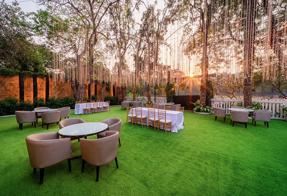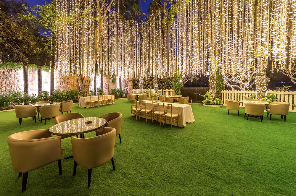 Gallops Mumbai was established over 3 decades ago in 1986 by a young team looking to bring in a rich culinary experience against the lush green Mahalaxmi Racecourse. Sprawling across a foliage-laden landscape, the vintage restaurant houses three wedding spaces laced with wooden and stone architecture, greens, and graceful arches that transport you and your guests back in time to the golden era. While one of the outdoor venues overlooks Mumbai’s magical skyline, the other outdoor space comes alive with crystals and fairy lights suspended from a colossal tree that cascades over the mandap or stage. The venue also boasts of a fully functional air-conditioned banquet which is perfect for hosting smaller events. Gallops has become a favorite wedding venue for many millennial couples and is equipped with top-notch service, a deliciously curated food menu, and mesmerizing ambiance.