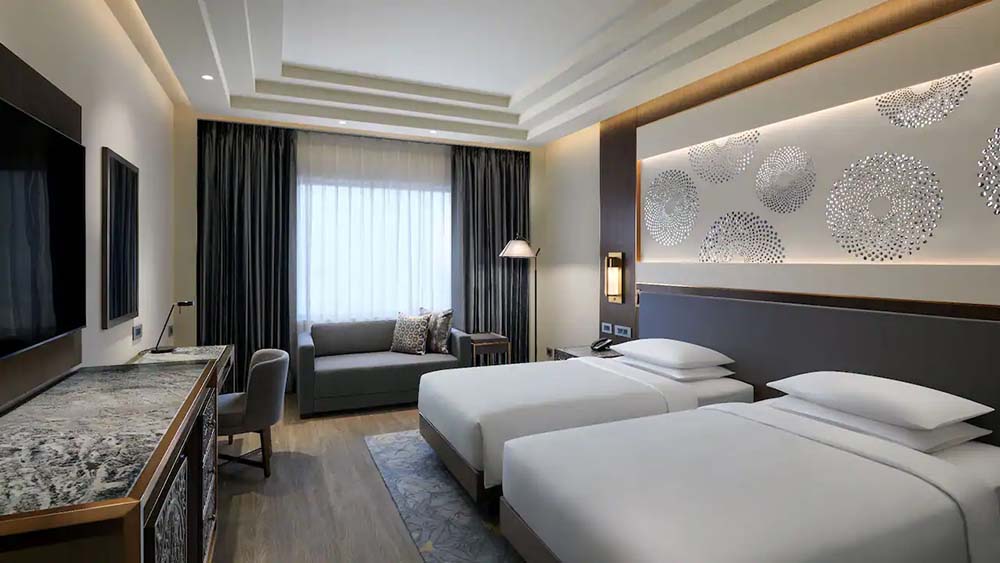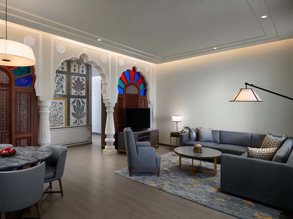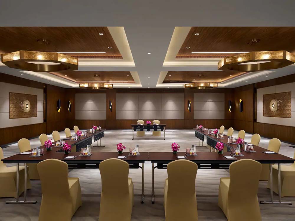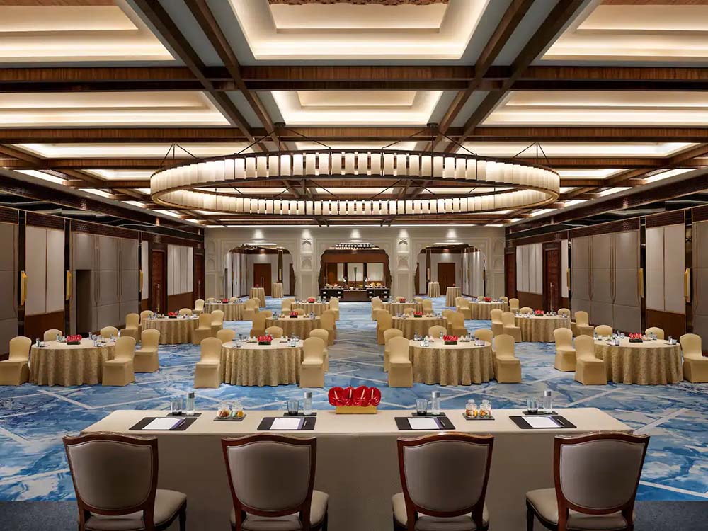 A breathtaking marriage of classic architecture and contemporary décor, Hyatt Regency Jaipur Mansarovar tells a story that weaves flawlessly into your wedding celebrations. With carefully crafted interiors and works of art that take your breath away, this venue with its unique event spaces is bound to make your union an unforgettable one. Redefining the grandeur and flamboyance of Rajasthani architecture their lush lawns, like Chauras Bagh is ideal for an intimate sangeet under the stars while the poolside Navras Bagh is for a playful haldi. While the large Imperial Ballroom can be used for a lavish wedding.