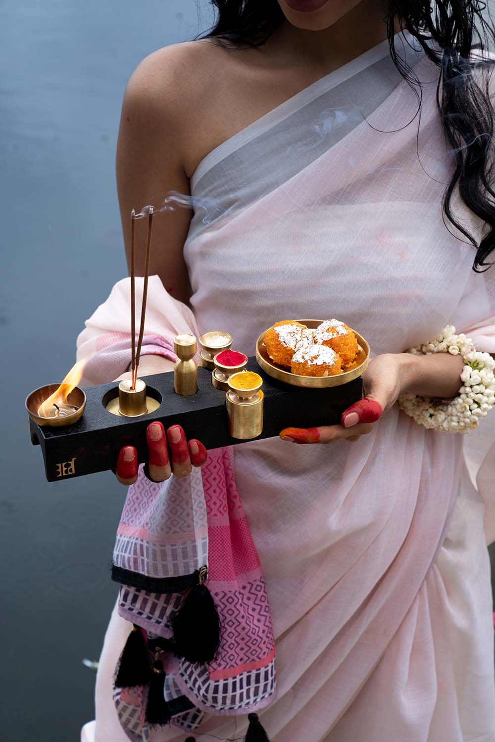 ARGHYA by Jagdish Sutar is a handcrafted prayer tray that merges elegance, tradition, and spirituality. Crafted with precision and inspired by the concept of ‘Pancha Upachara’—the five-sense worship—ARGHYA offers a unique way to infuse daily rituals with beauty and meaning. This stunning tray serves as a thoughtful and symbolic addition to any wedding, making it an unforgettable gift that transcends time.