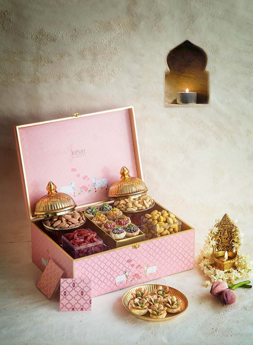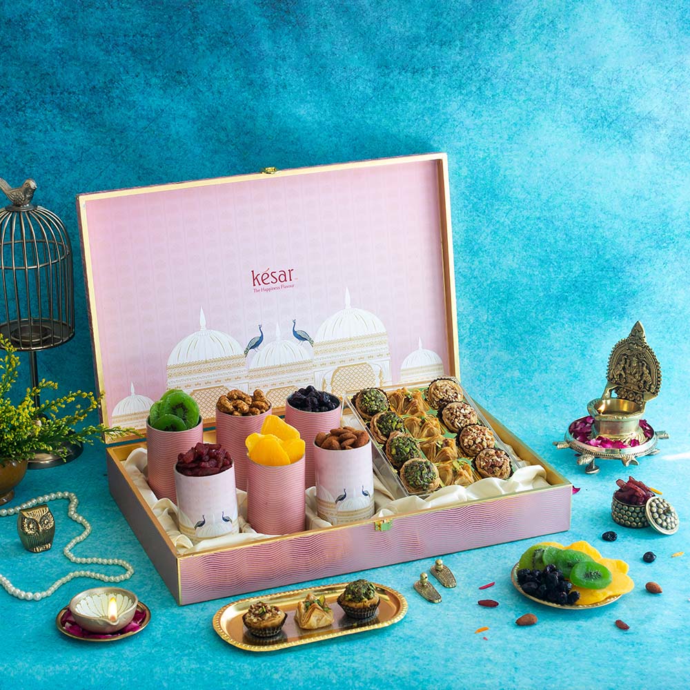 A mithai boutique, Kesar boasts a rich legacy of offering gourmet sweets in Jaipur and across the globe. With a history of 70 years and counting, they have been crafting unforgettable moments for their clients. Their penchant for innovation drives them to deliver the finest mithai ranging from traditional to exotic, while their luscious delicacies are infused with contemporary and international flavors and customized according to the client’s taste. Their artisanal sweets are renowned for their unique taste and craftsmanship, adding a touch of sweetness to every occasion. When it comes to gifting, their premium solutions are the perfect choice for weddings, baby showers, or corporate events.