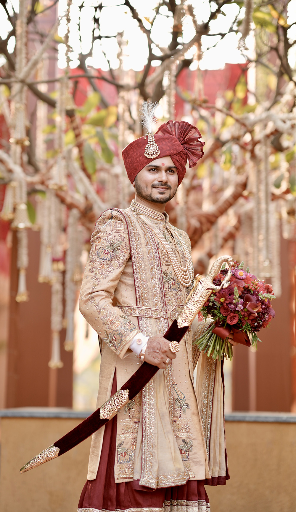 Mantra Kishore – The Groom Stylist, understands that every groom is unique, and they offer personalized consultations to ensure that your safa and flower accessories reflect your style and personality.