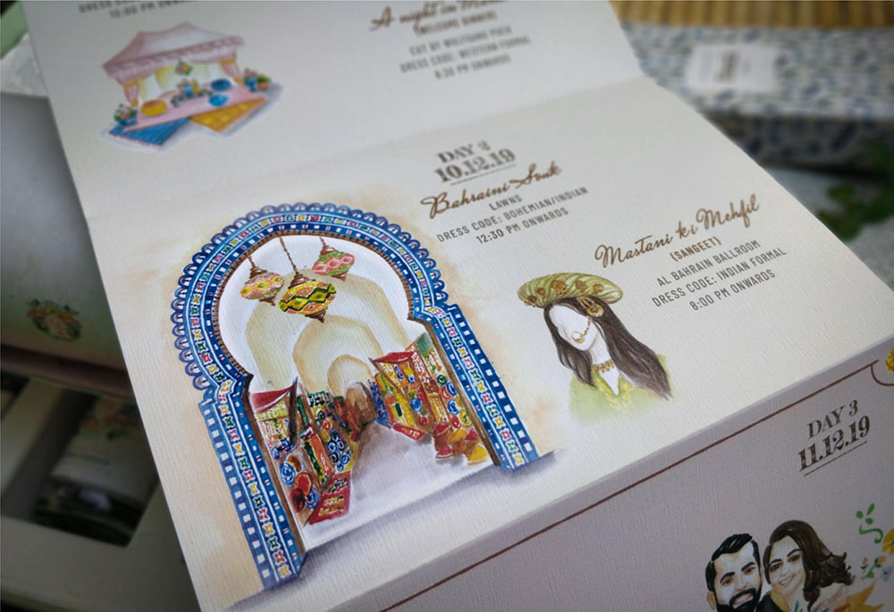 Peeping into the lives and personal experiences of their clients, they weave their invites around their stories, making each design utterly unique and one-of-a-kind. Pragmatic Art has delivered breathtaking invites ranging from watercolor leaflets to wedding maps, digital and animation cards.