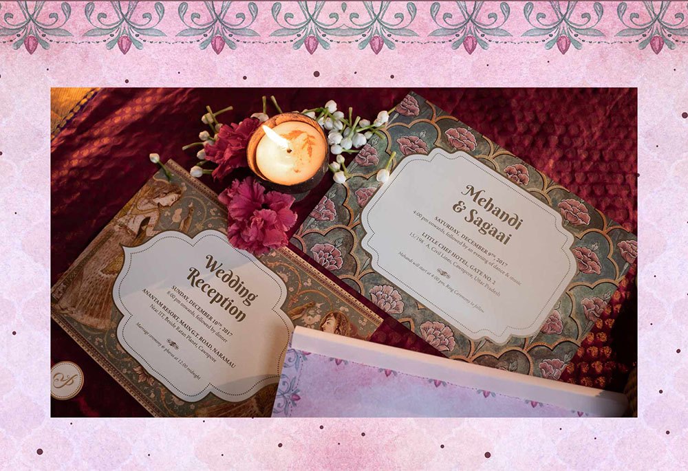 Founded by Prashant Golani, erstwhile art assistant to Sanjay Leela Bhansali, and his wife Maxima Basu, a well-acclaimed costume designer in Bollywood, Pragmatic Art is a boutique design agency that specializes in creating bespoke theme-based wedding invites and stationery. The artistic duo brings their past experiences in elaborate film designs and unparalleled creative expertise to create stunning designs.