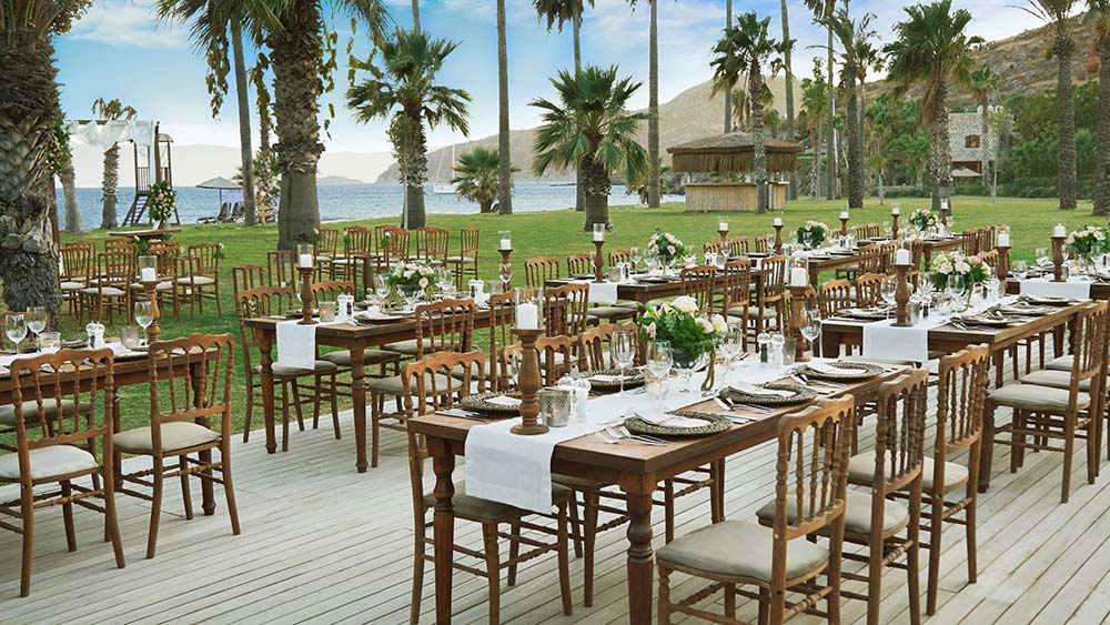 Featuring 80 rooms and suites with scintillating views of the coastline and the tranquil waters, the novel resort offers unparalleled amenities, delectable Mediterranean and International cuisine, and exquisite indoor and outdoor spaces to frame your festivities. Explore a range of cozy yet stunning restaurants and bars for those intimate brunch or cocktail soirees, a whimsical wedding by the Termera Beach, or a fairytale reception by the Club House. Radisson Collection Hotel, Bodrum also offers you a personalized luxury service throughout your wedding, with a wedding planning team dedicated to assisting you with everything from flowers to decoration, catering, and more.