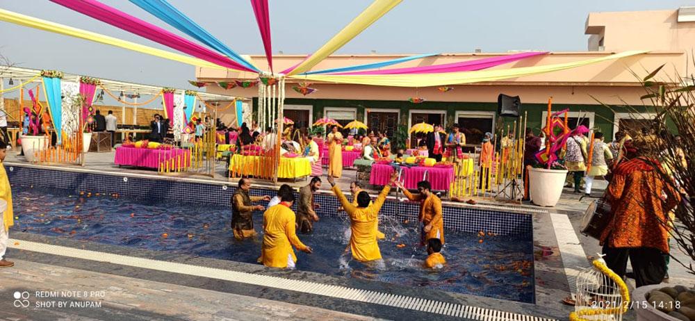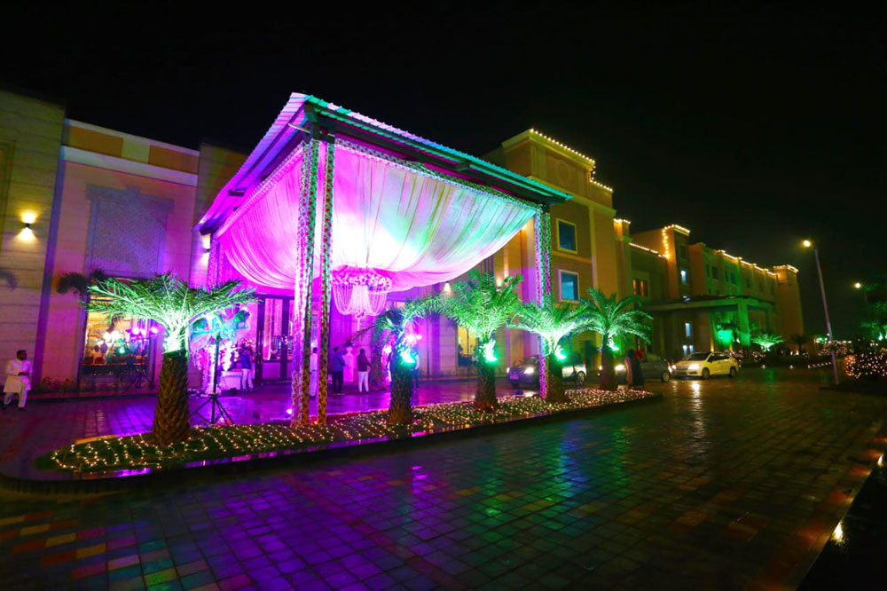 Combining traditional elegance with contemporary style and modern decor, Shree Jee Vilas impresses even the most discerning of guests. Located in the heart of Murthal, Sonipat this gorgeous hotel leaves no stone unturned to ensure your loved ones indulge themselves to the fullest. From vast outdoor spaces, a terrace to soak up the sun, state-of-the-art gym, a playground to a pool – here nothing is left to the imagination when it comes to luxury. With 43 sleekly designed rooms that are also spacious, your wedding guests are sure to enjoy themselves to the fullest while they take part in the revelries. And, when it comes to the wedding celebrations, there is plenty of space for that too! Give your creativity wings with Shree Jee Vilas’ stunning wedding lawn – a lush outdoor space where you can either tie the knot under the stars or host a spectacular reception! Meanwhile, the two indoor banquet halls, spread out over 16,000 square feet and 3000 square feet respectively, are ideal for pre-wedding events like a sangeet, haldi or even a cocktail party. Equipped with a dedicated team of in-house co-ordinators who can design, decorate and plans weddings, Shree Jee Vilas is the perfect spot for you to begin your ‘happily ever after’.