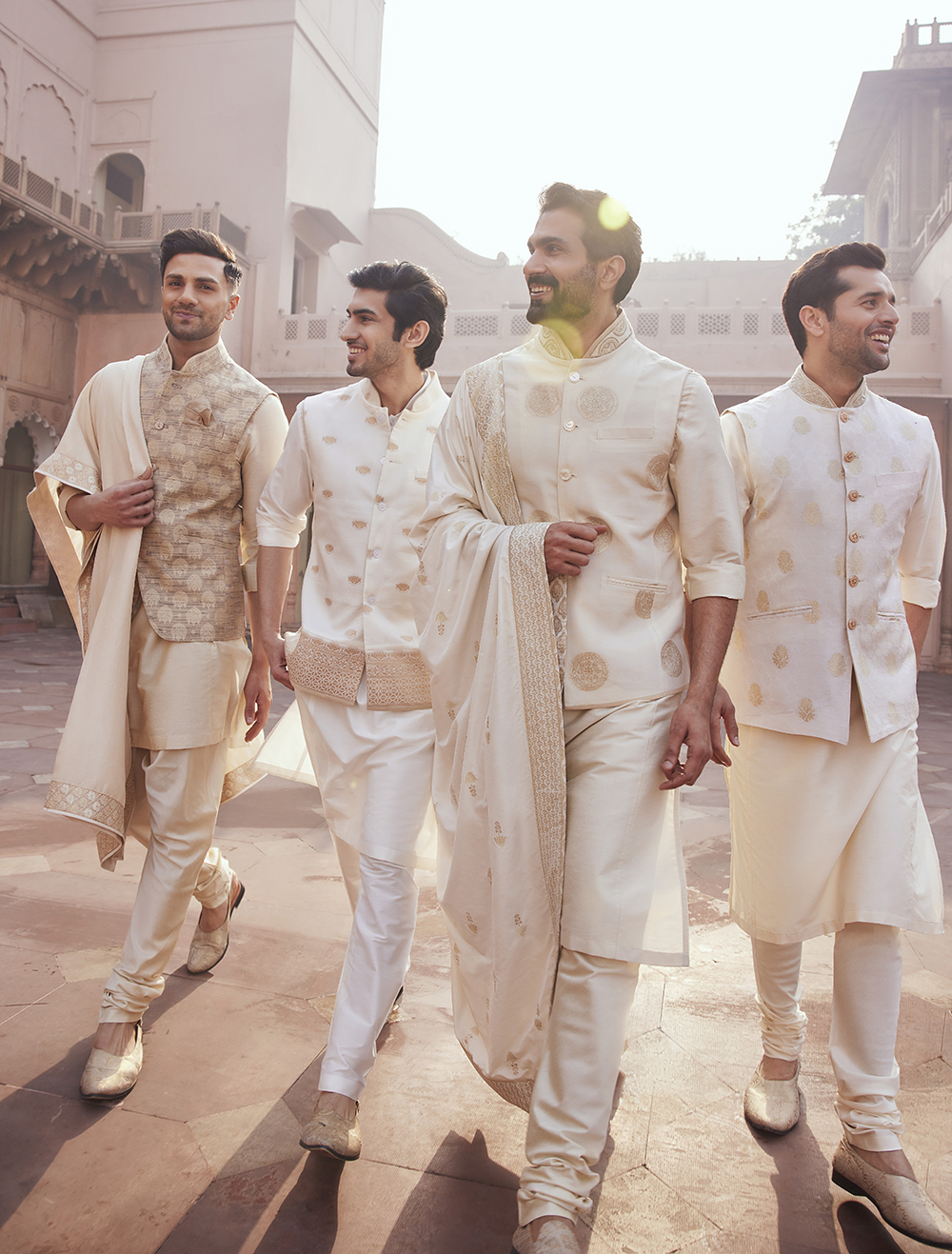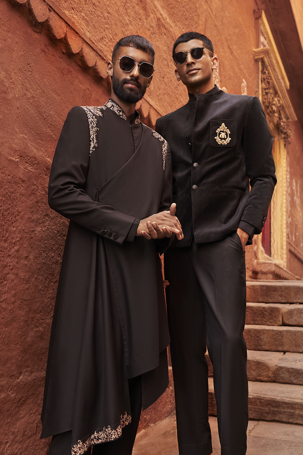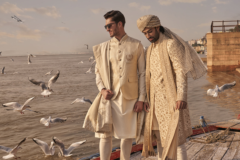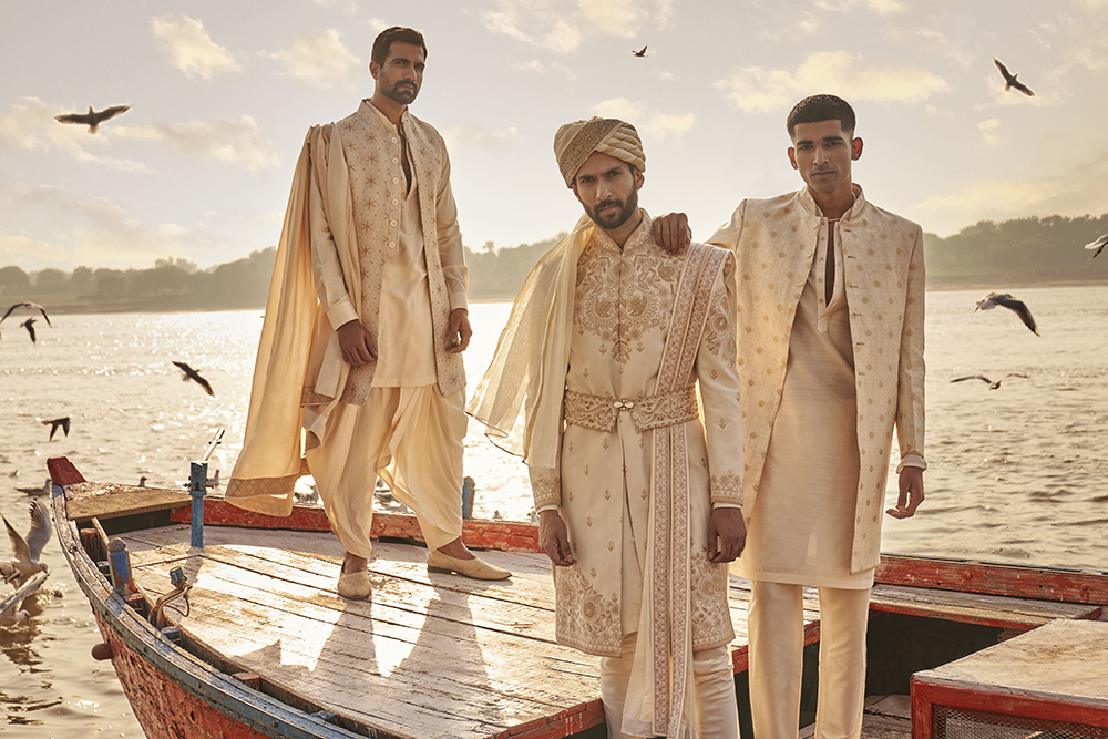 Embrace the mood and get going with their fresh new take on Achkans, Bandhgalas, Jodhpuris, Sherwanis and all the accessories – shawls, stoles, shoes and more.