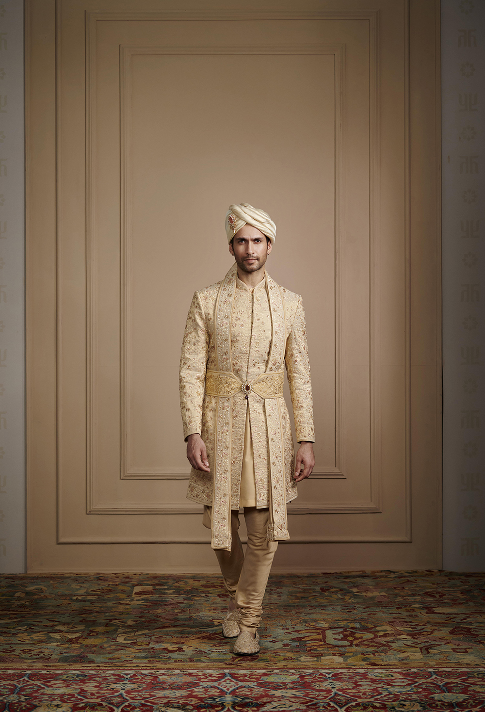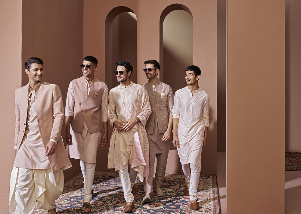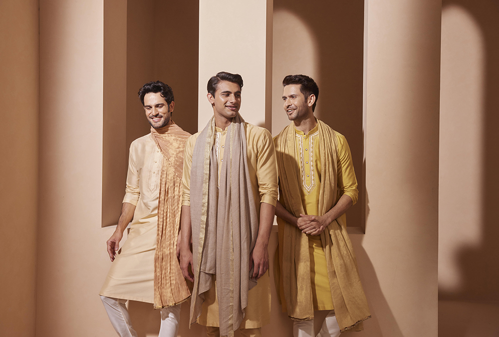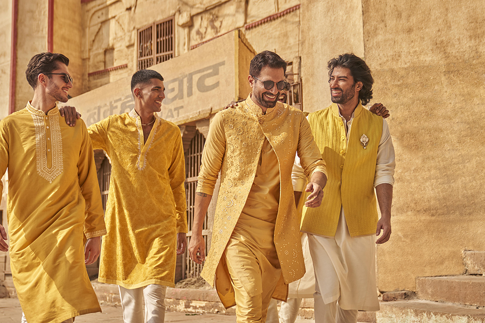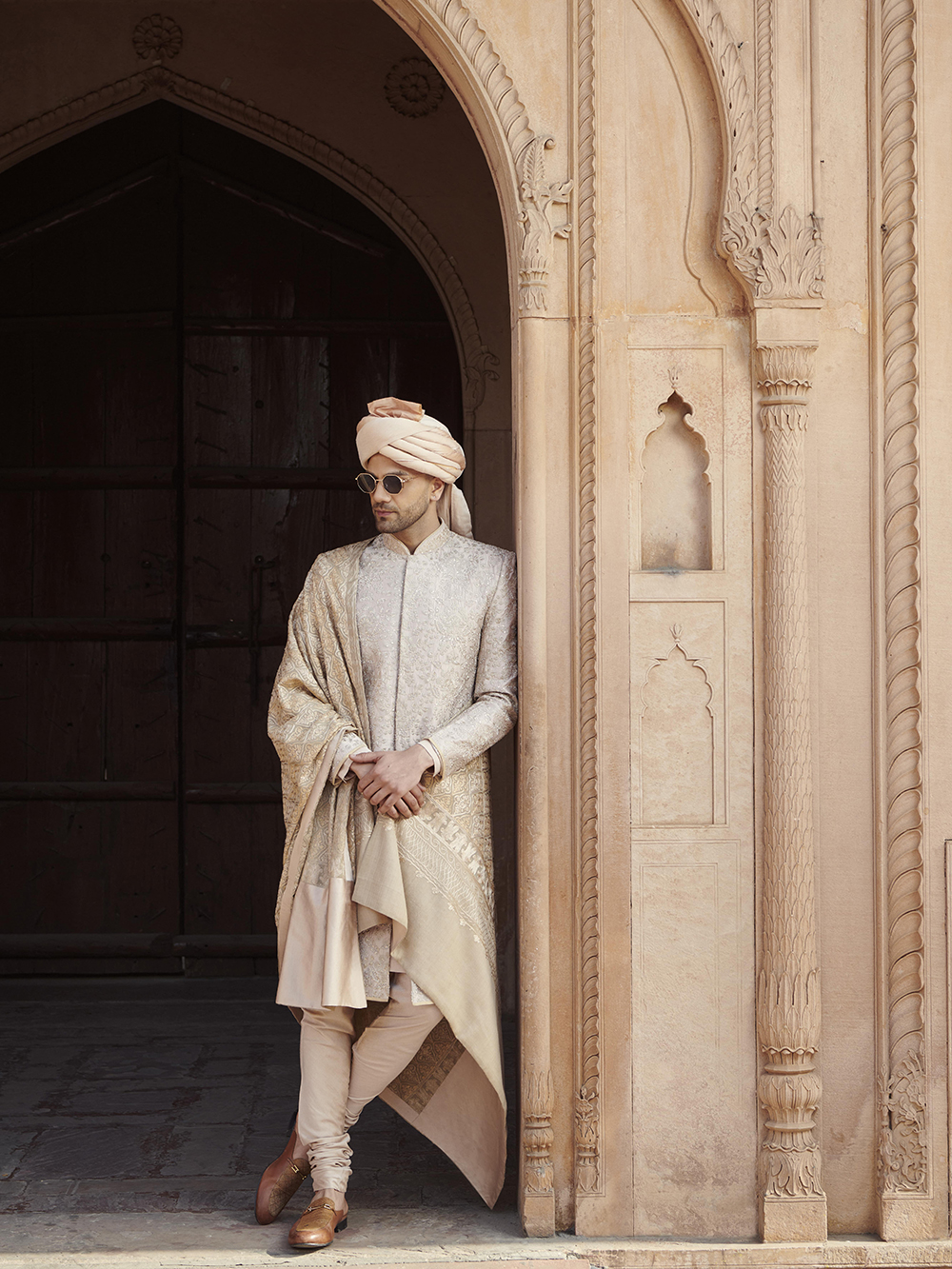 Embrace the mood and get going with their fresh new take on Achkans, Bandhgalas, Jodhpuris, Sherwanis and all the accessories – shawls, stoles, shoes and more.